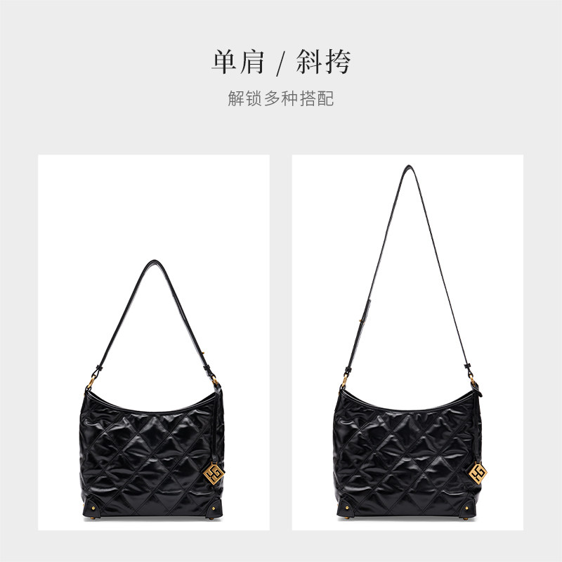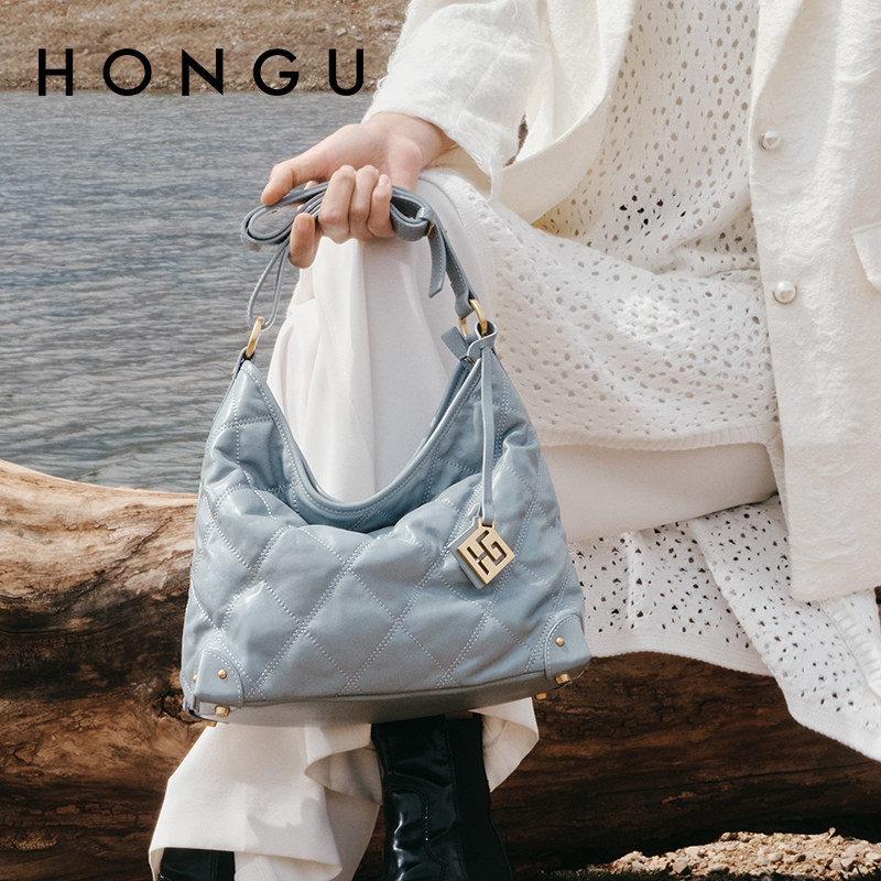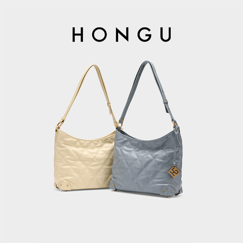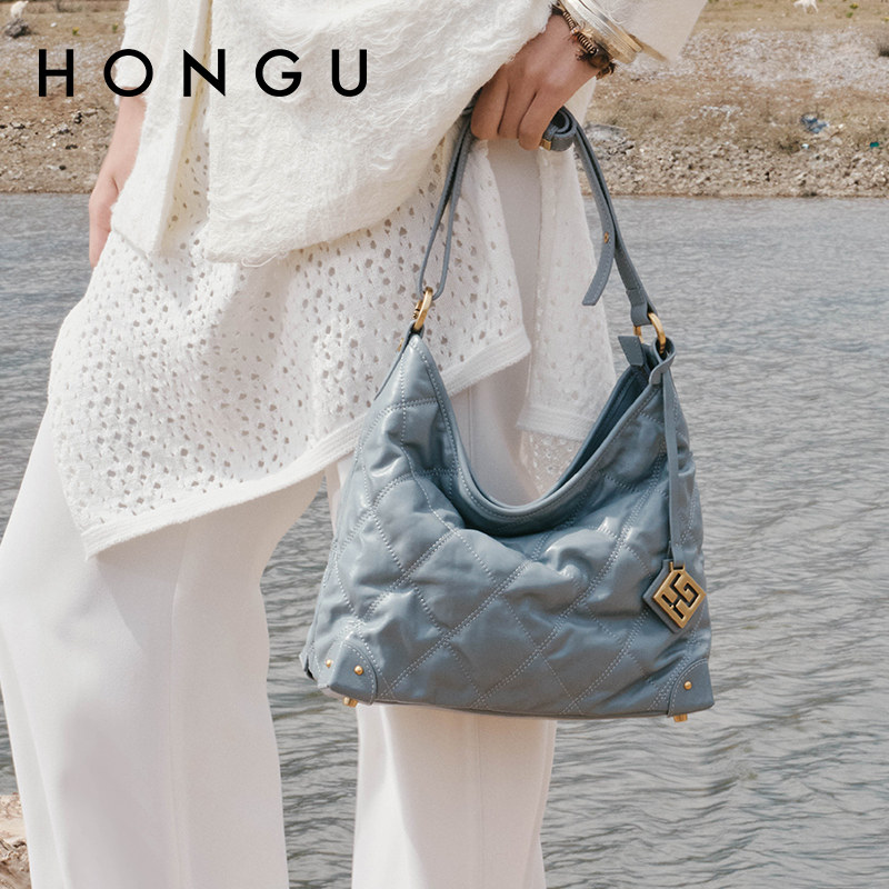红谷包包女新款菱格包真皮单肩手提包高级感大容量水桶包女士包