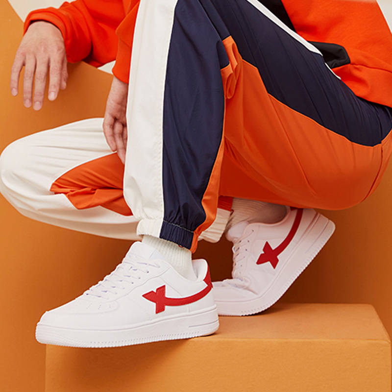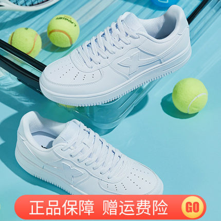 特步板鞋男鞋春秋季皮面白色休闲轻便运动鞋子女鞋小白鞋空军一号