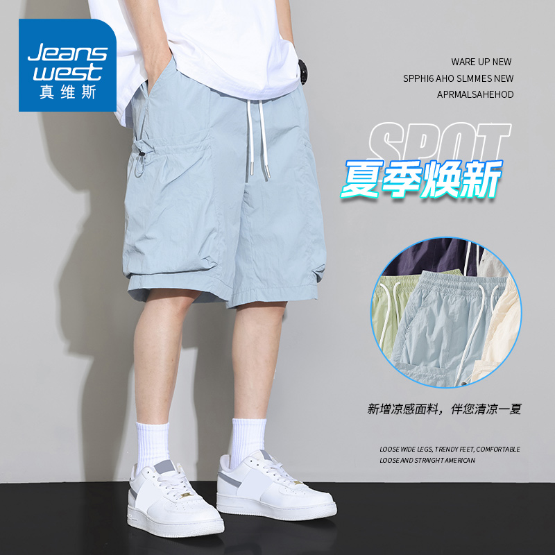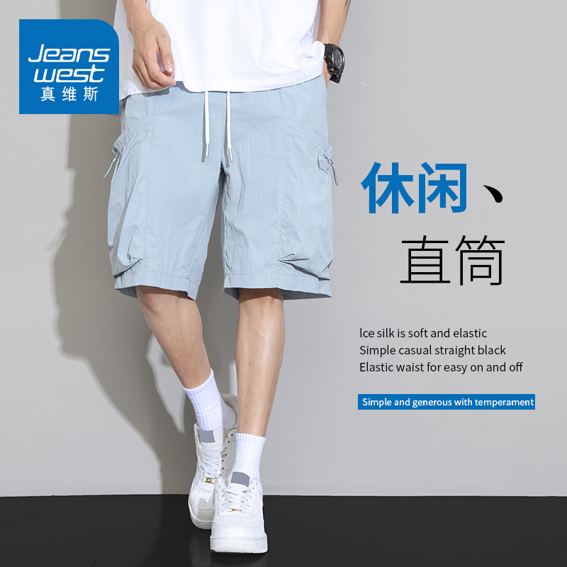 KZH真维斯凉感工装短裤男夏季新款宽松五分裤潮牌大口袋休闲中裤