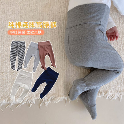 婴儿纯棉春秋外穿打底裤袜宝宝高腰护肚长裤带袜男女新生儿大pp裤