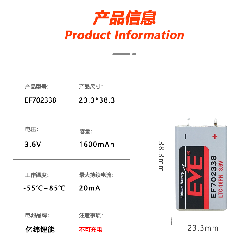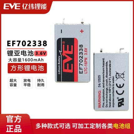 亿纬EF702338 3.6V方形锂亚电池适用于LTC-16PN印刷机物联网主板