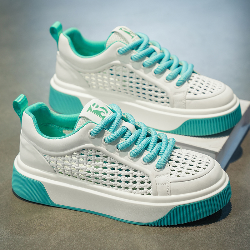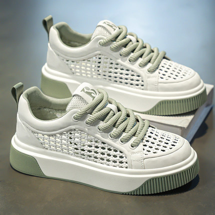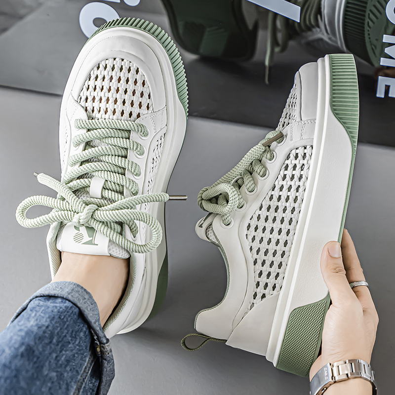 男鞋2025新款夏季网面透气厚底增高板鞋百搭网鞋运动休闲小白白鞋