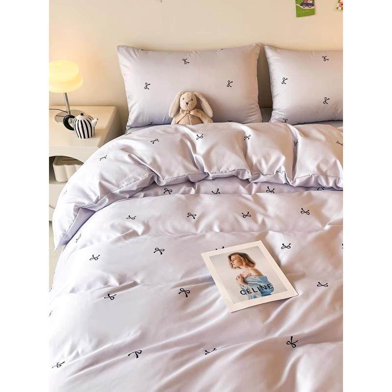 夏天四件套冰丝床单夏季被套水洗真丝学生宿舍三件套床笠床上用品