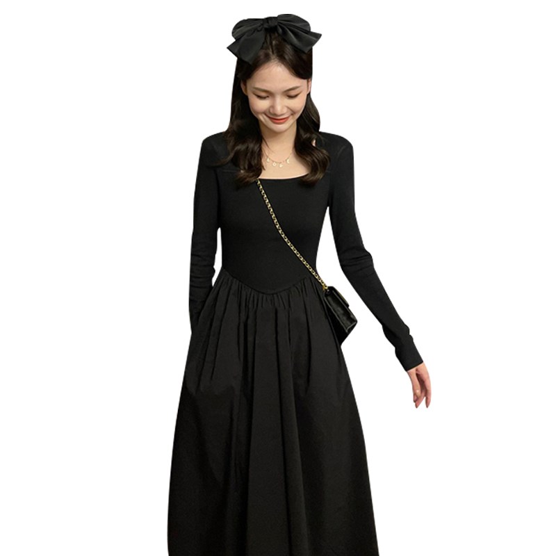 法式黑色长袖连衣裙子早初秋季2024年新款女秋冬赫本风小个子长裙