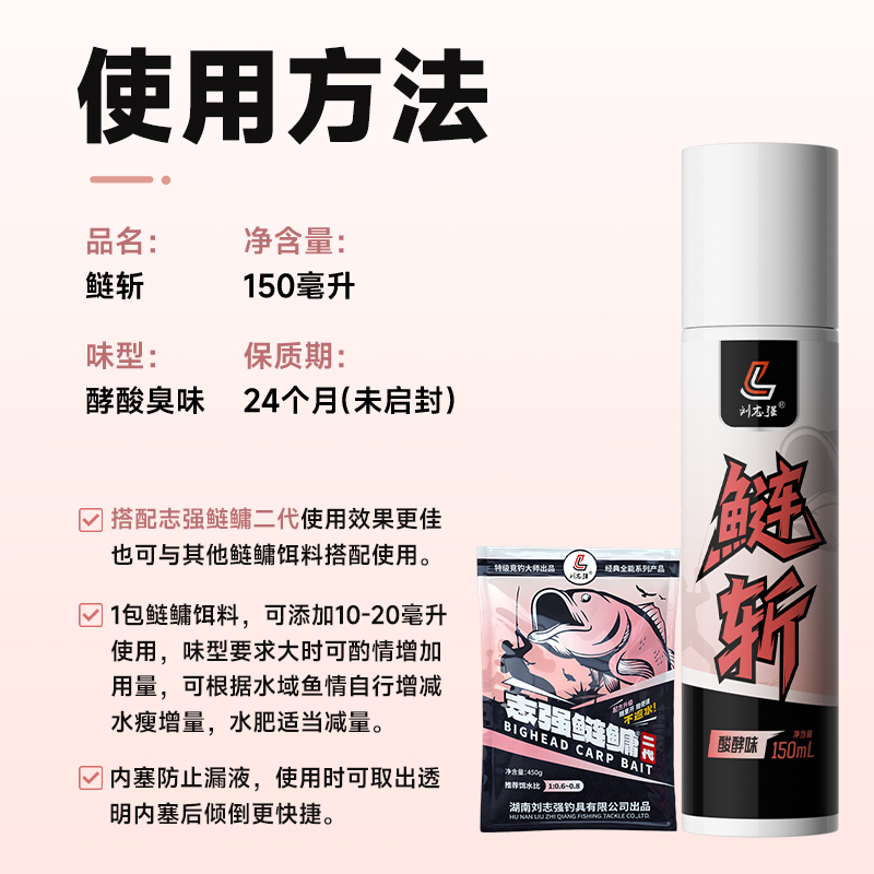刘志强鲢鳙小药鲢斩浮钓鲢鳙饵料诱鱼添加剂酸臭味黑坑花白鲢诱食