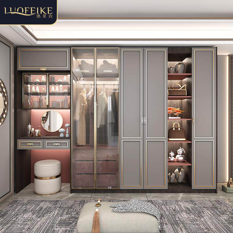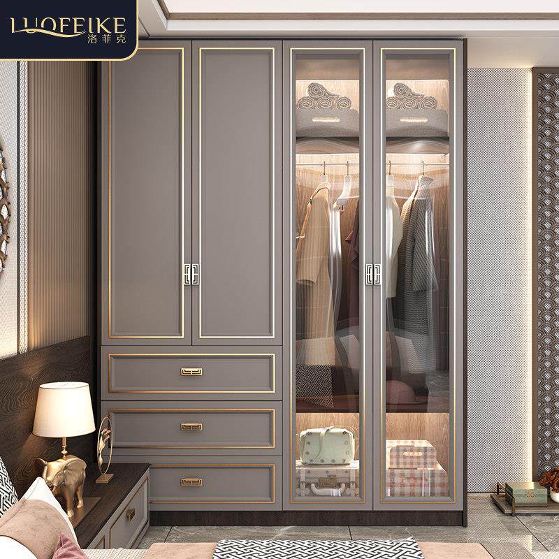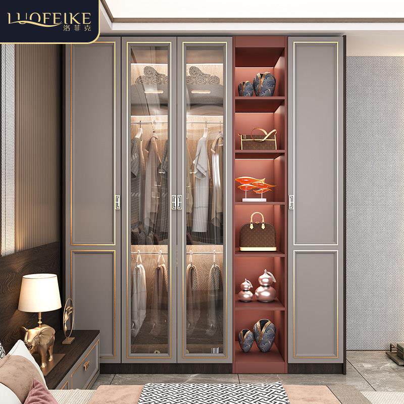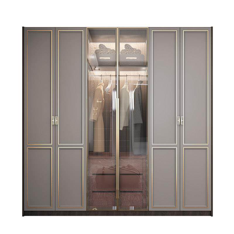 轻奢实木衣柜家用卧室现代中式大衣橱新款木质四五六门整体收纳柜
