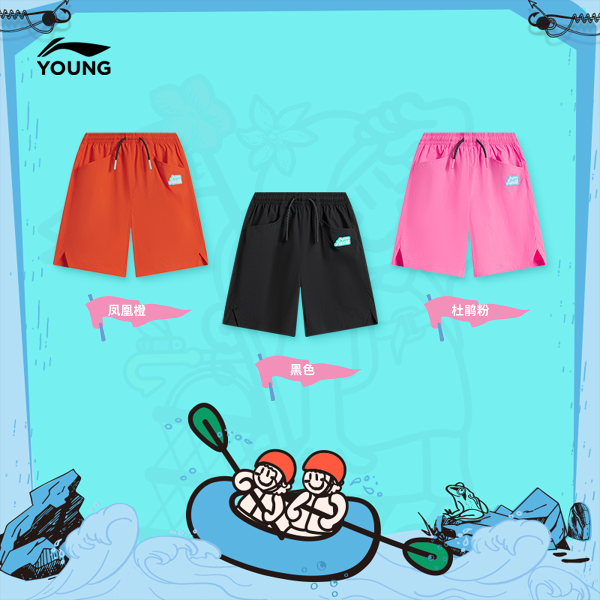 李宁儿童宽松运动短裤