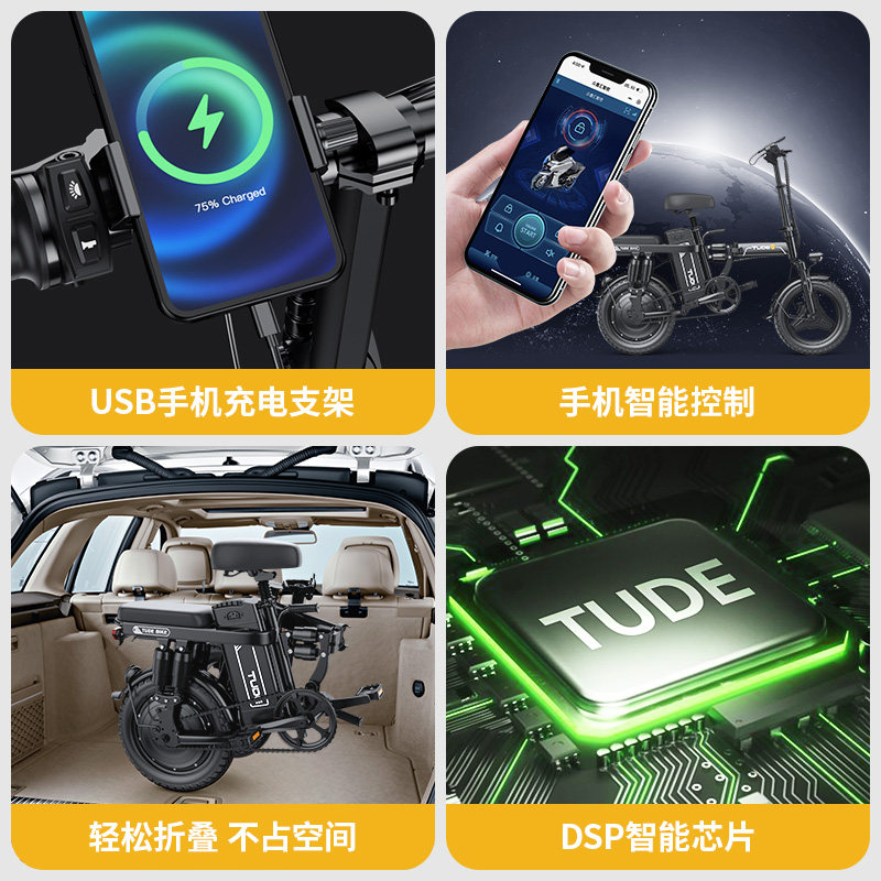 途得折叠电动车新国标电动自行车锂电超轻便携小型代步代驾电瓶车
