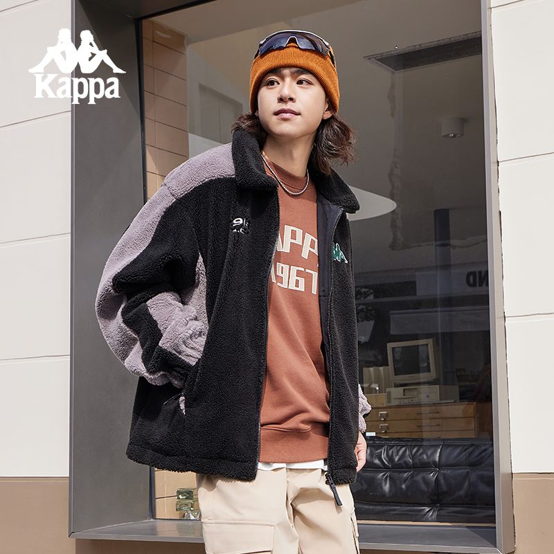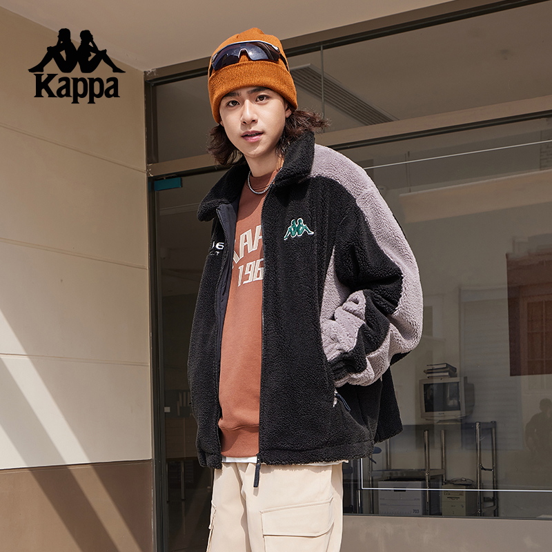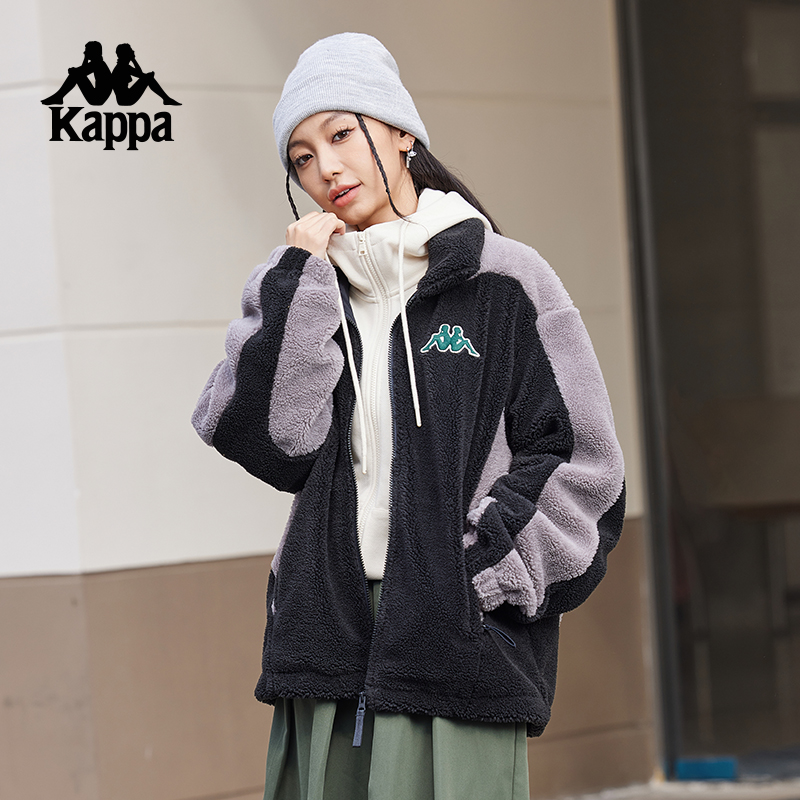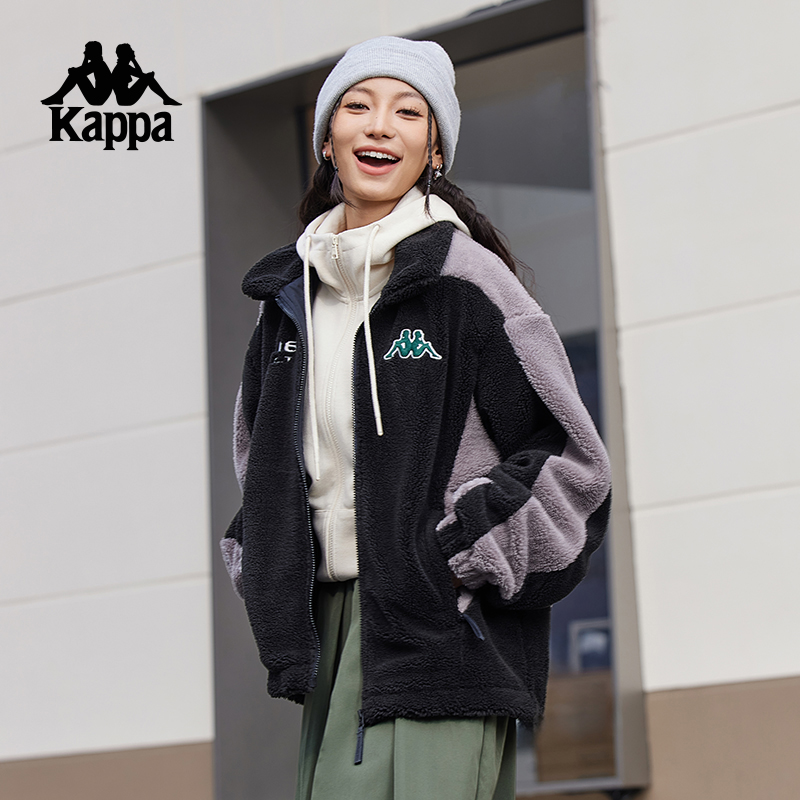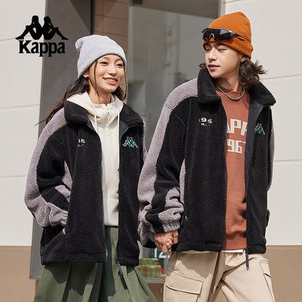 Kappa卡帕背靠背复古摇粒绒撞色运动外套女针织开衫男士休闲上衣