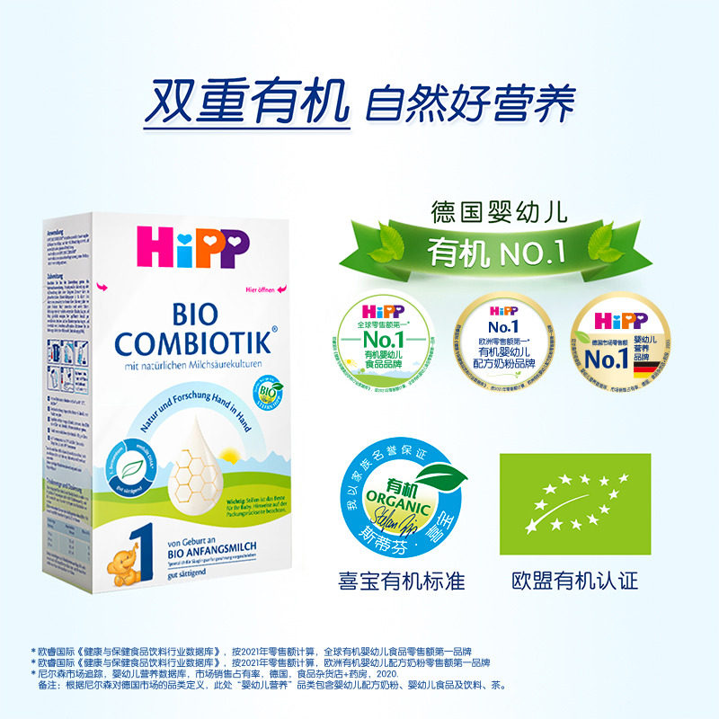 德国珍宝版HiPP喜宝奶粉1段0-6个月宝宝有机益生菌配方奶粉600g