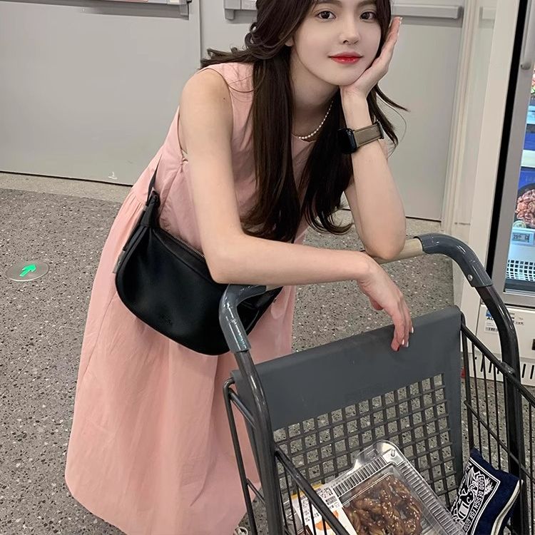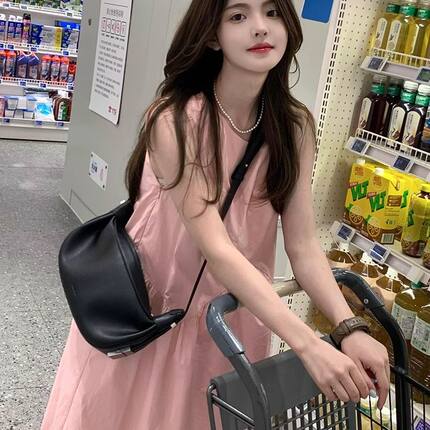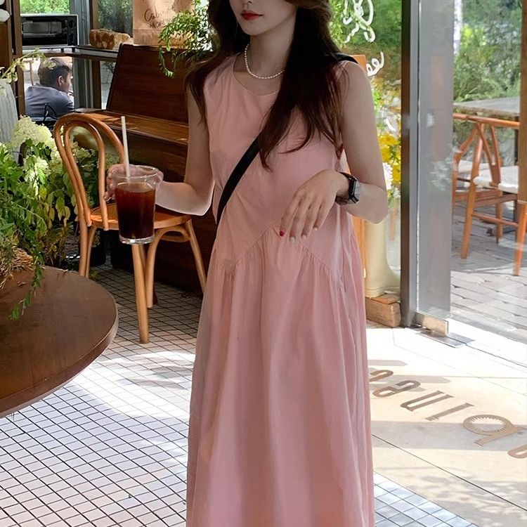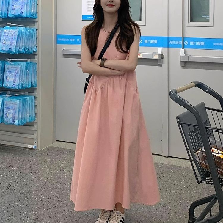 大码胖mm宽松小个子粉色无袖吊带连衣裙子女装夏季小众设计感长裙