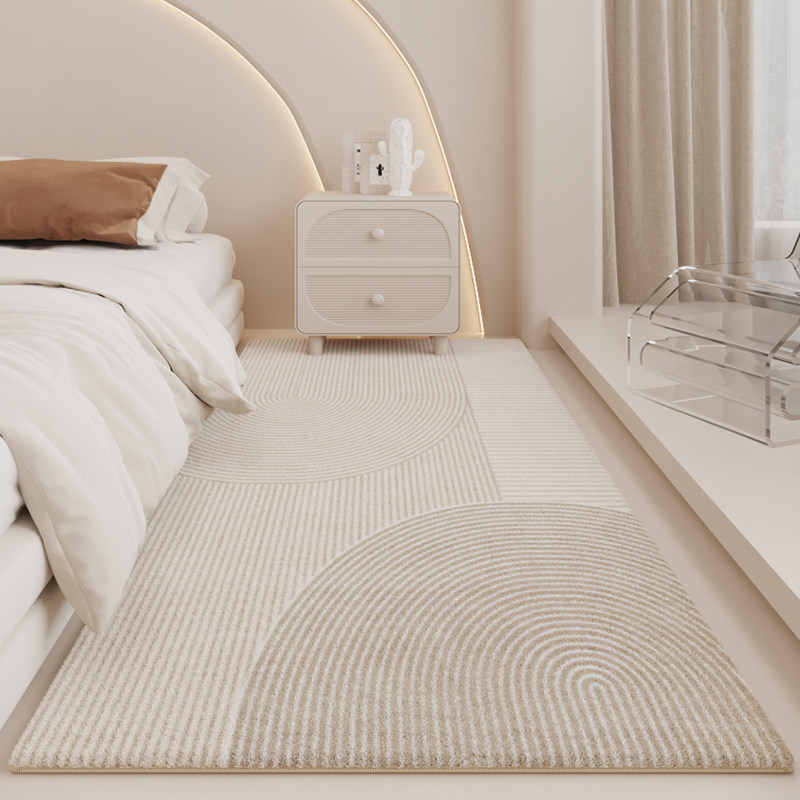 暖色地毯卧室奶油风房间牀边毯侘寂风客厅茶几毯短绒主卧牀前地垫