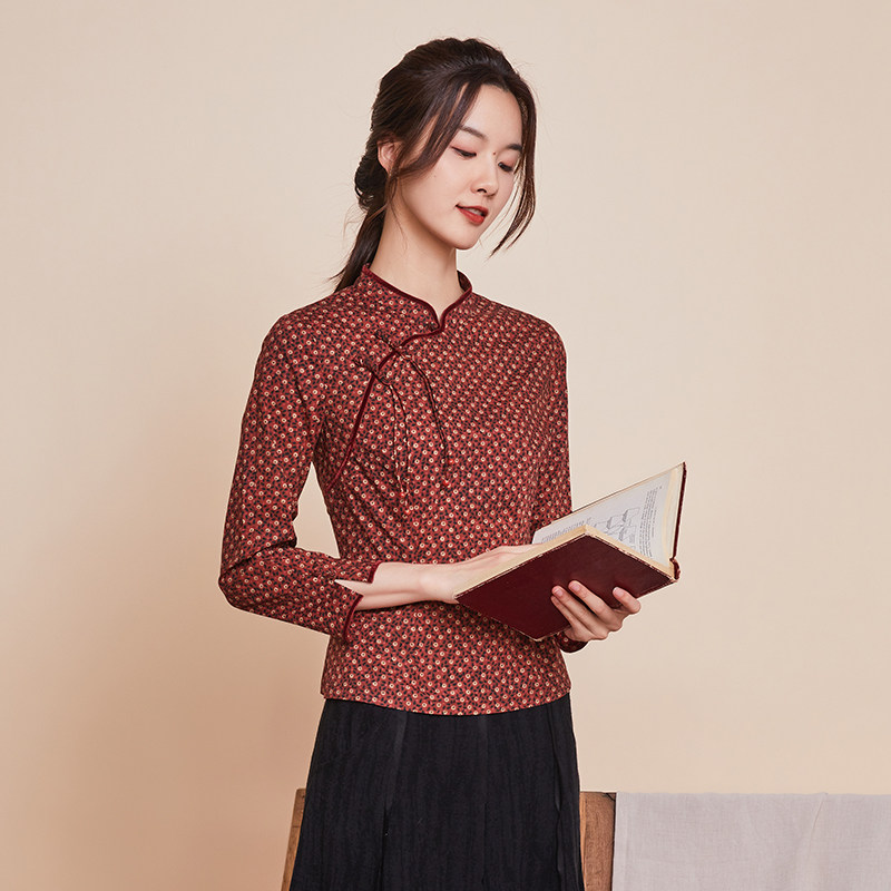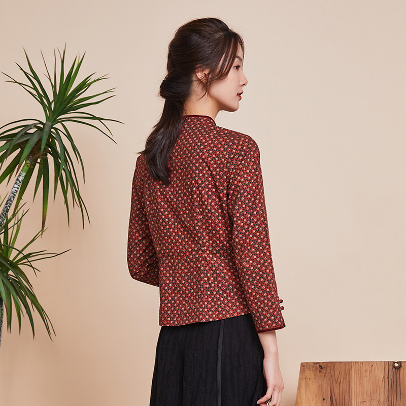 布符春季新款原创复古印花时尚民国改良中式唐装旗袍上衣女