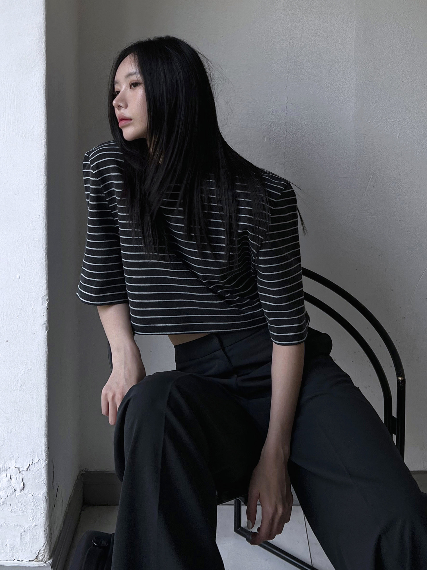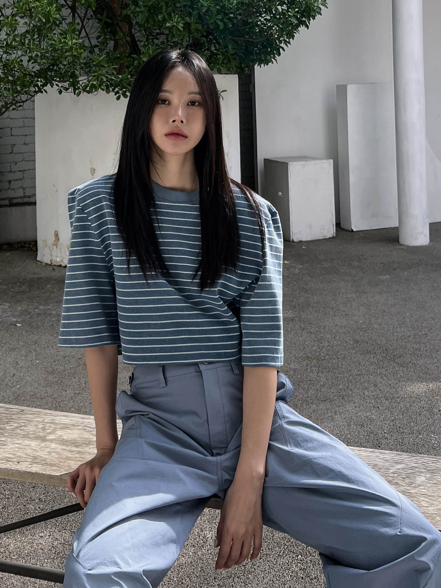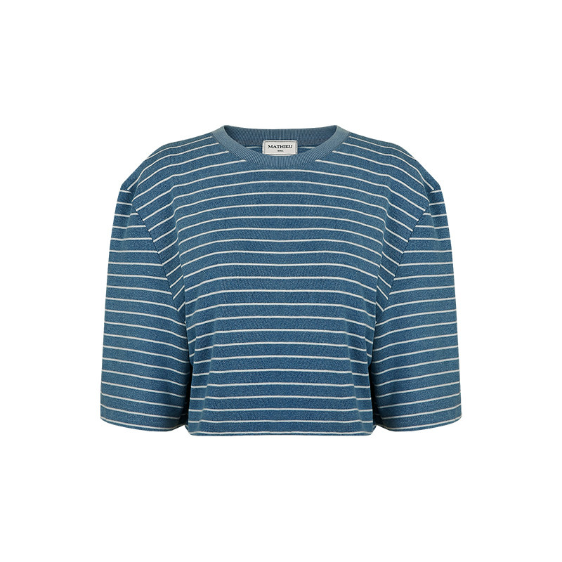Mathieu韩国时髦条纹短袖T恤女夏季时尚别致打底衫宽松撞色上衣