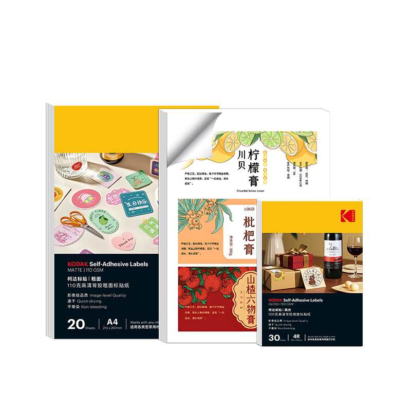 背胶标贴纸a4高清光面哑面标签纸6寸哑光防水喷墨打印纸亚光粘贴带胶照片纸手账标贴相片纸易撕开相纸diy