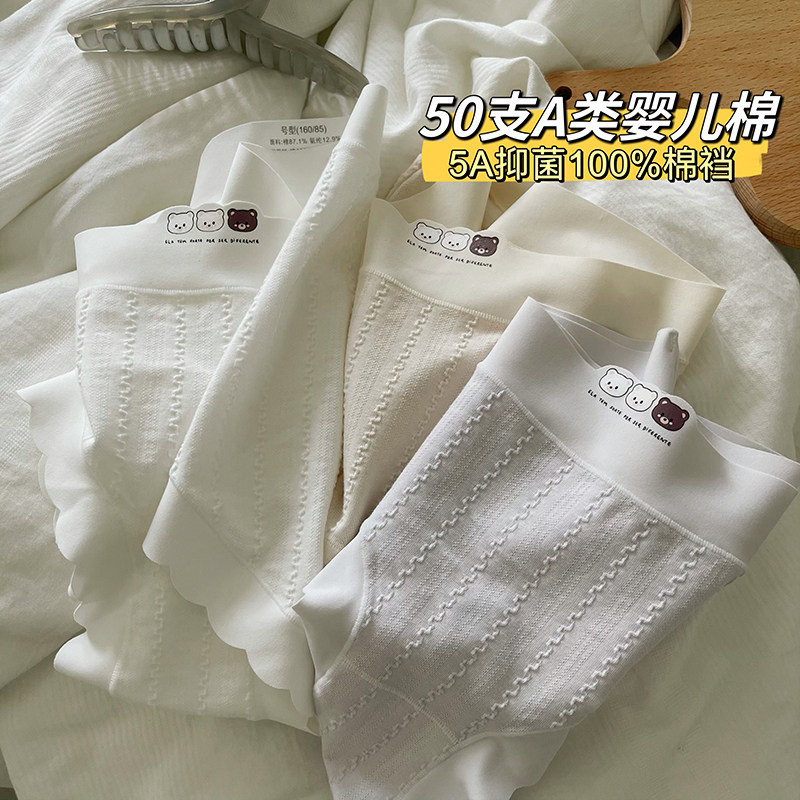 50支A类婴儿棉内裤女生纯棉可爱抗菌中腰包臀无痕女士全棉裆清仓