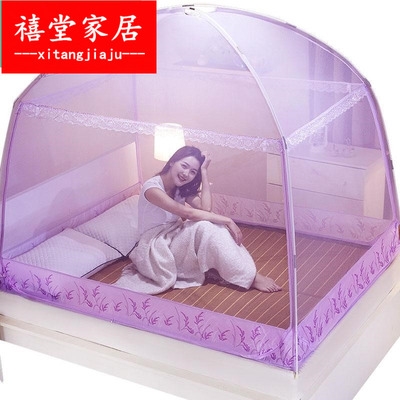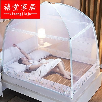 榻榻米蒙古包蚊帐回形底无底家用1.2m单人床加密加厚1m三门