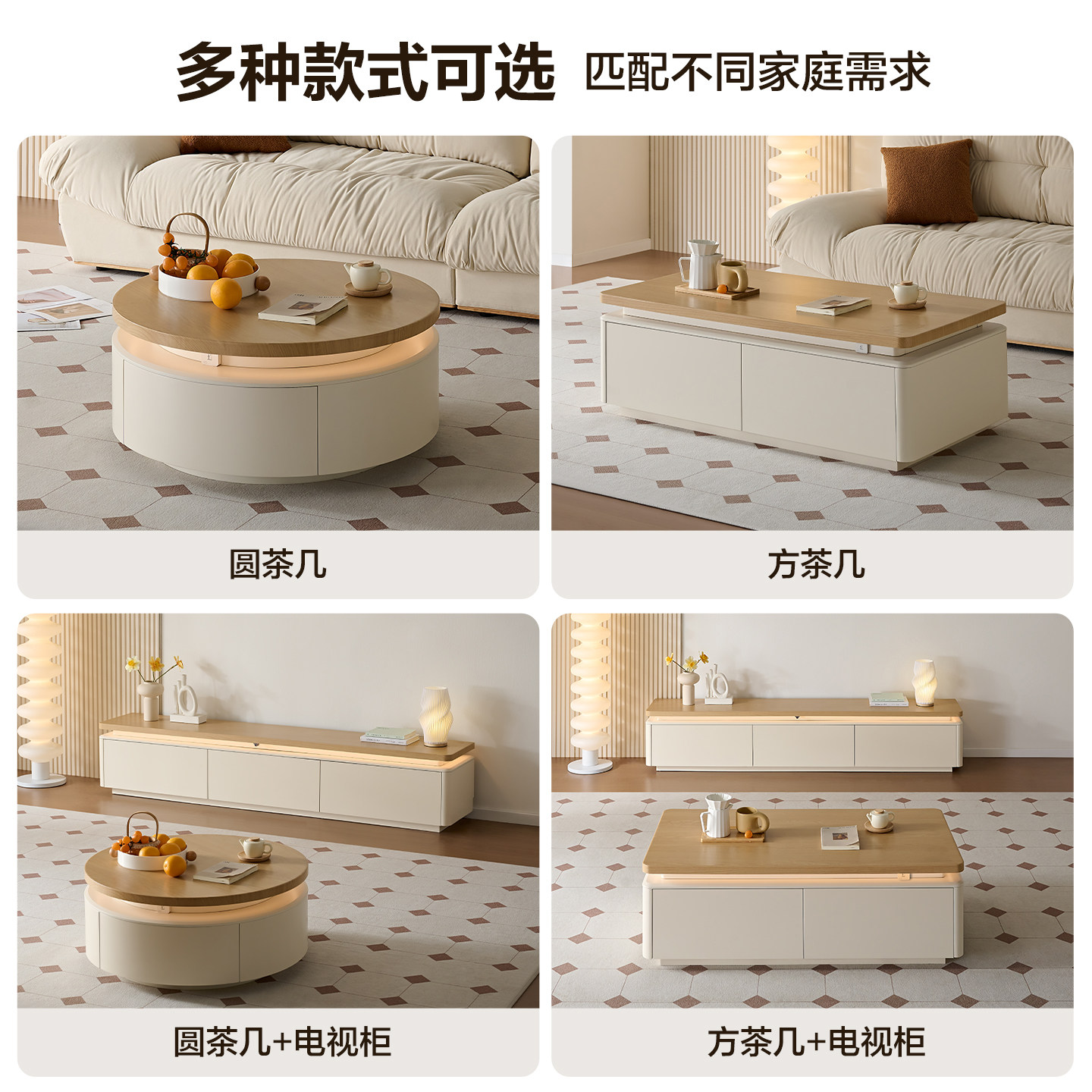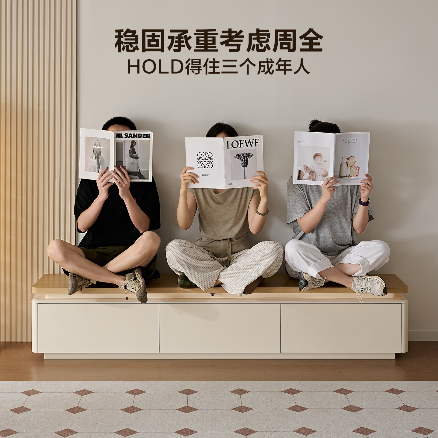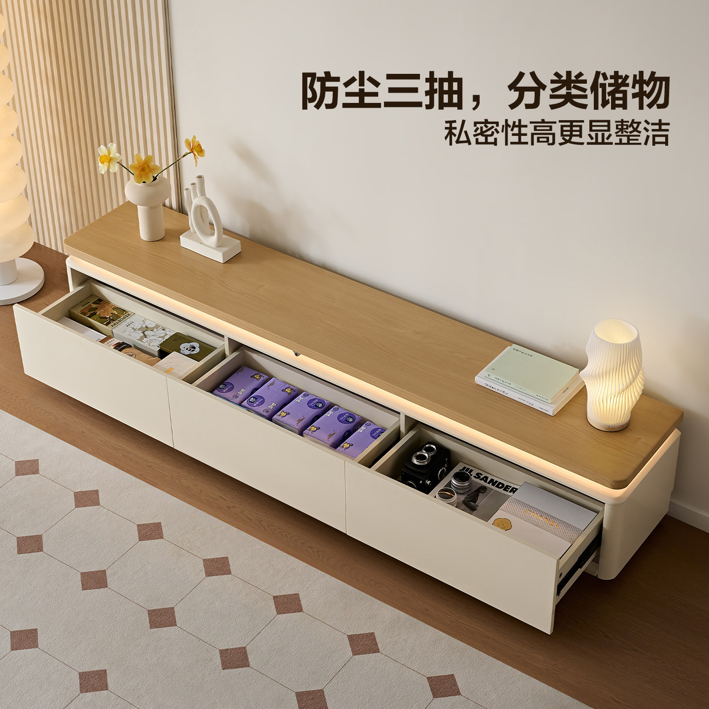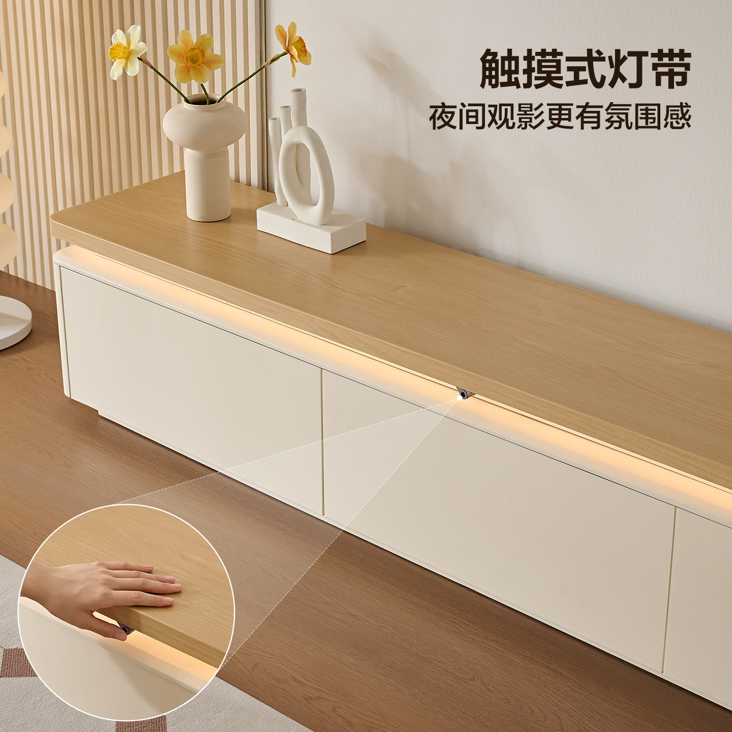 全友家居原木奶油风落地电视柜收纳储物柜一体客厅茶几电视柜组合
