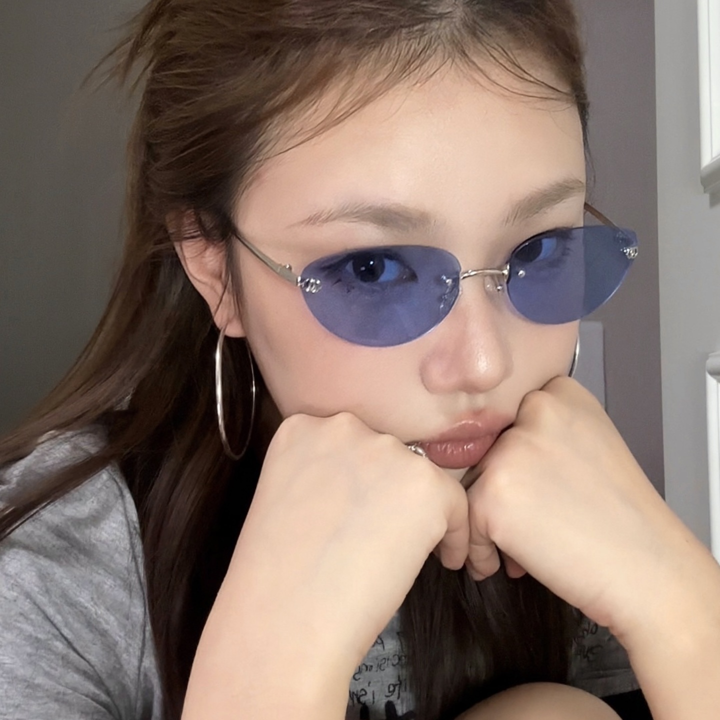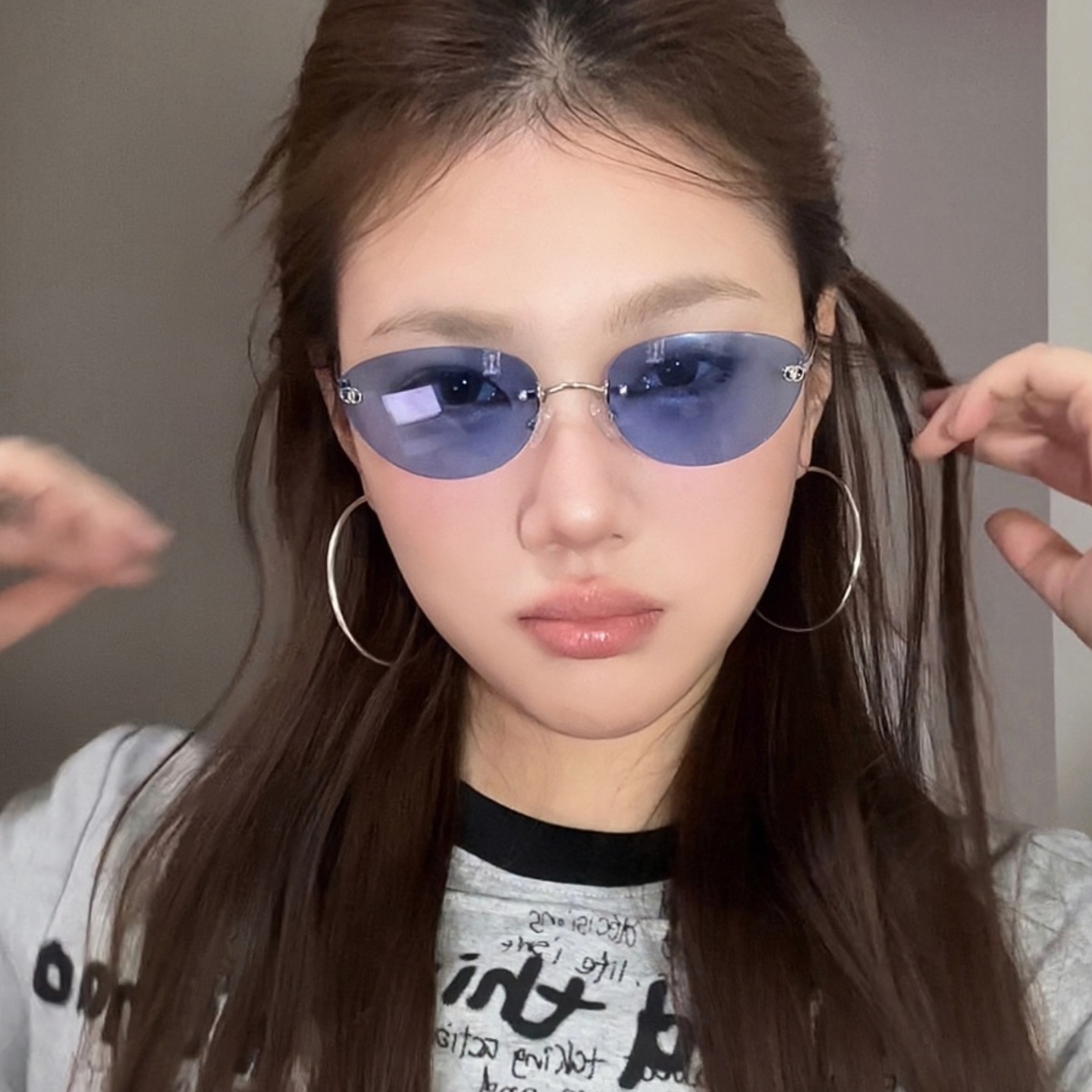复古无边框猫眼墨镜Jennie同款女