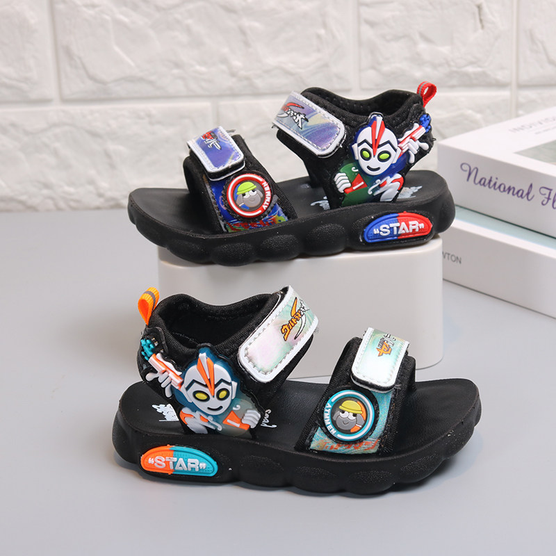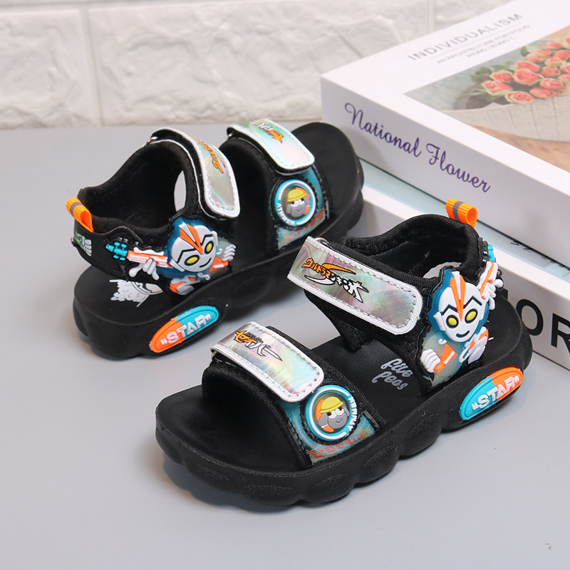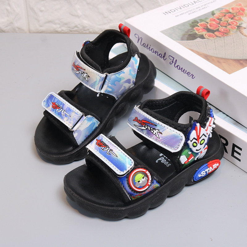 儿童凉鞋男童鞋夏季新款闪灯防滑卡通中小童宝宝聚氨酯轻底沙滩鞋