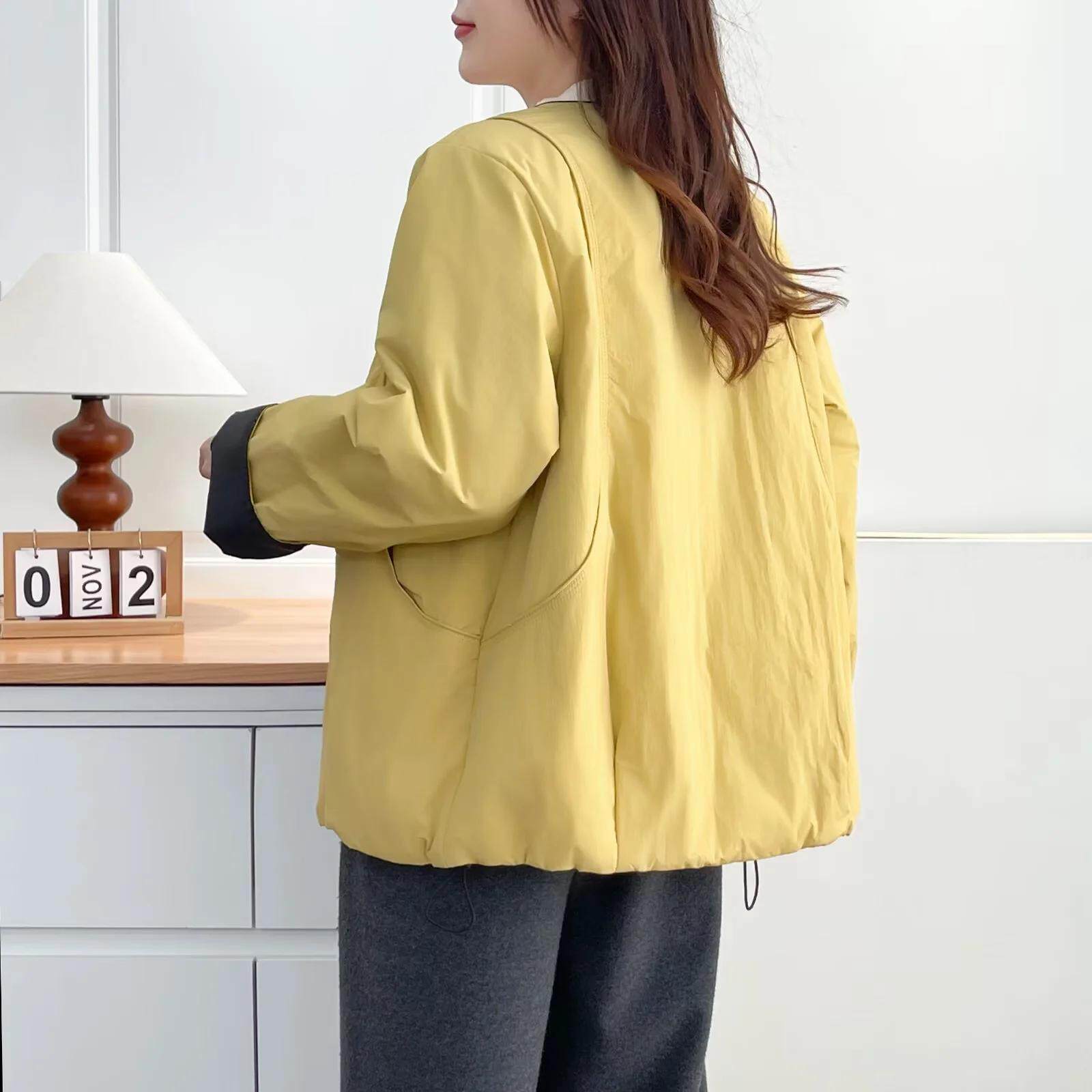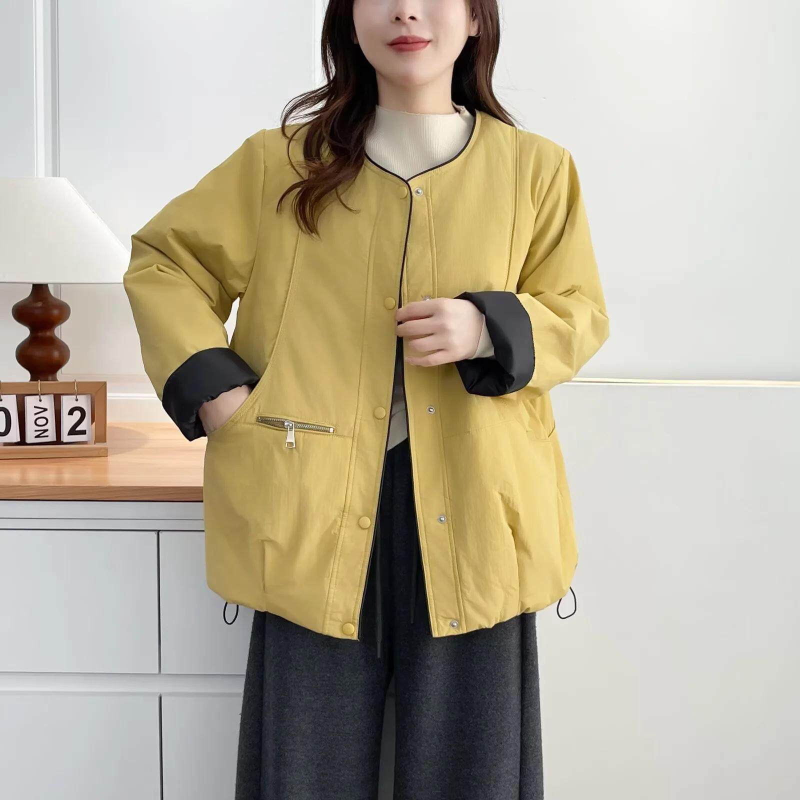 圆领拉链宽松撞色拼接棉袄
