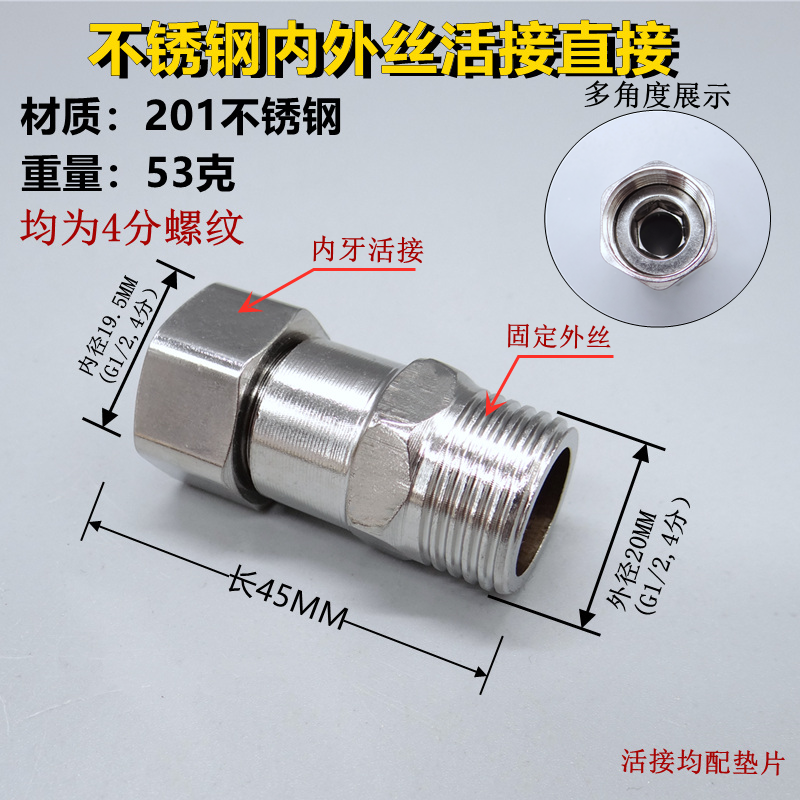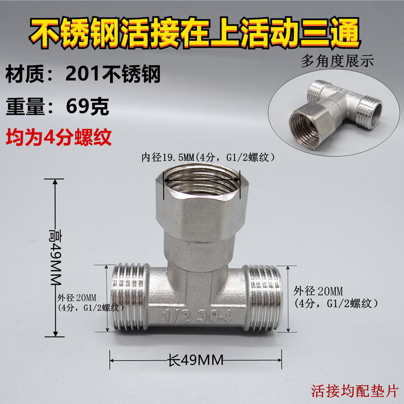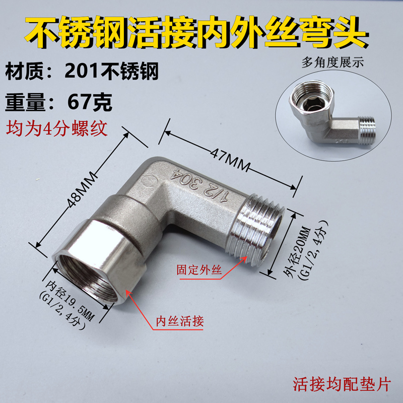 4分不锈钢内外丝活动弯头 活接弯头三通直接 水管接头 不锈钢管件