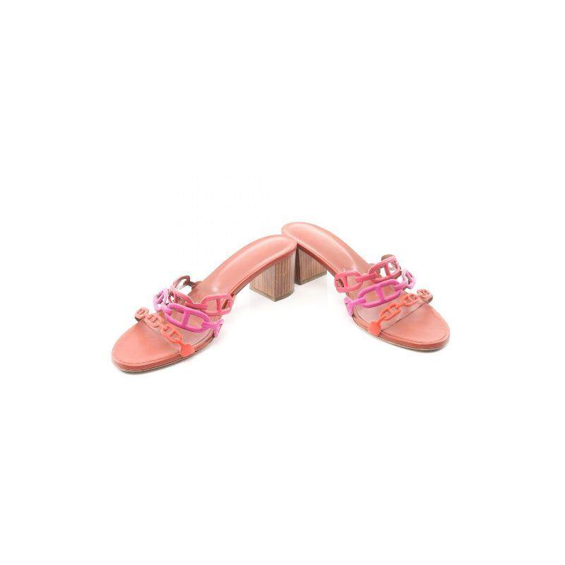 中古Hermes爱马仕女B级9新Chaîne d'Ancre爱马仕锚链牛皮鞋粉色