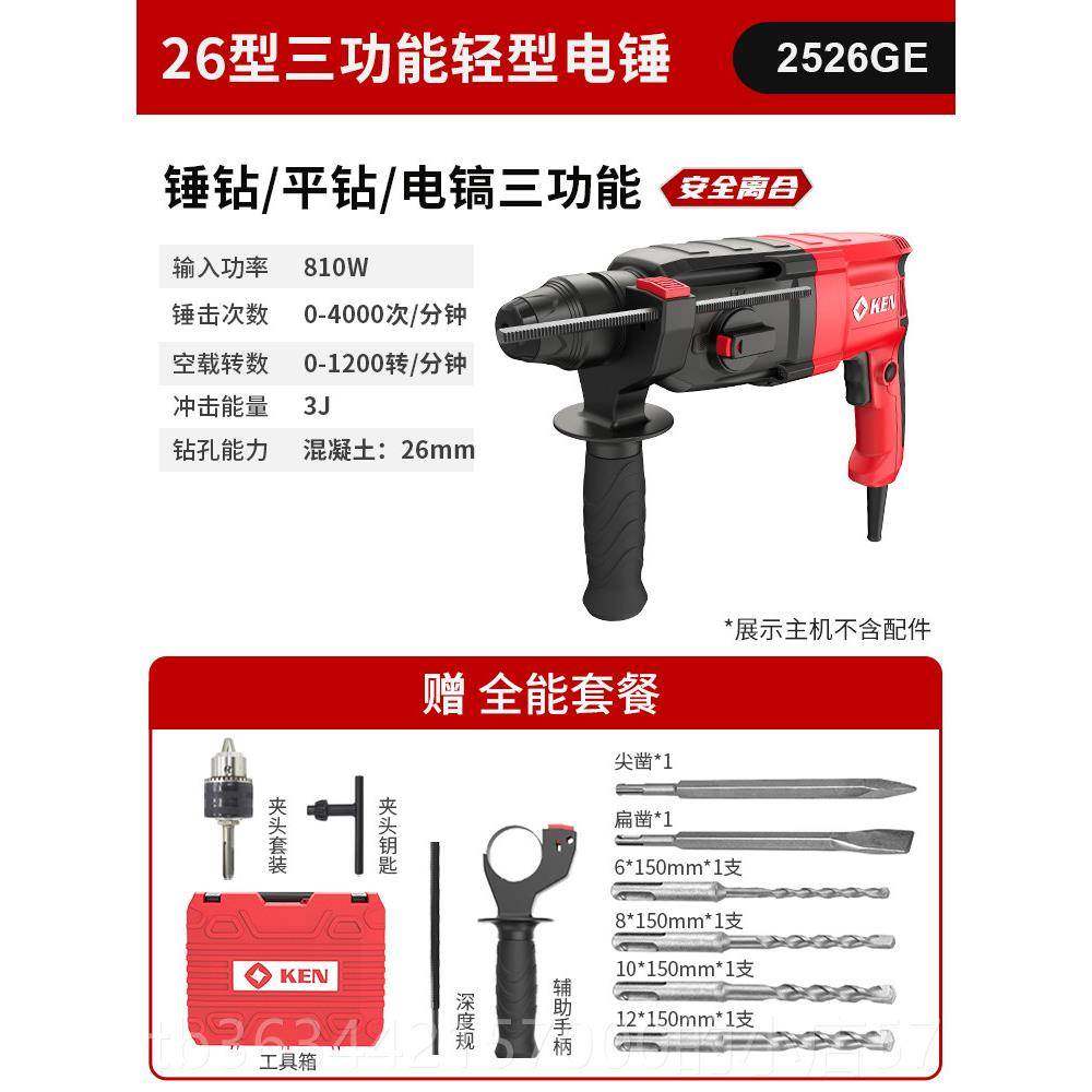 高档KEN锐奇业轻型电锤功率工级镐电镐冲击钻2526混大凝土钻两用