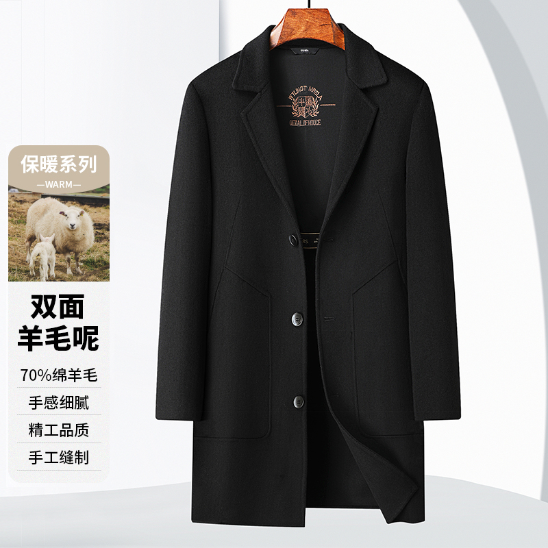 恒源祥羊毛双面呢男士毛呢大衣秋季新款翻领呢子外套男中长款2024