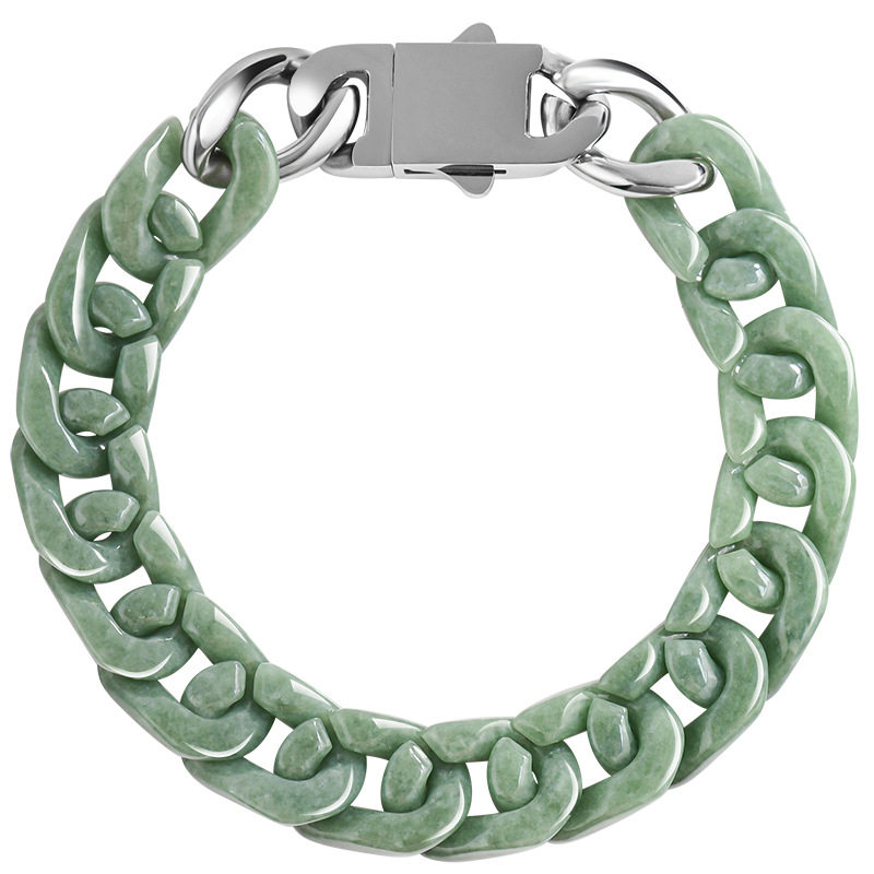 正品天然a货翡翠豆绿古巴手链玉石钛钢嘻哈风格个性男女潮流手饰