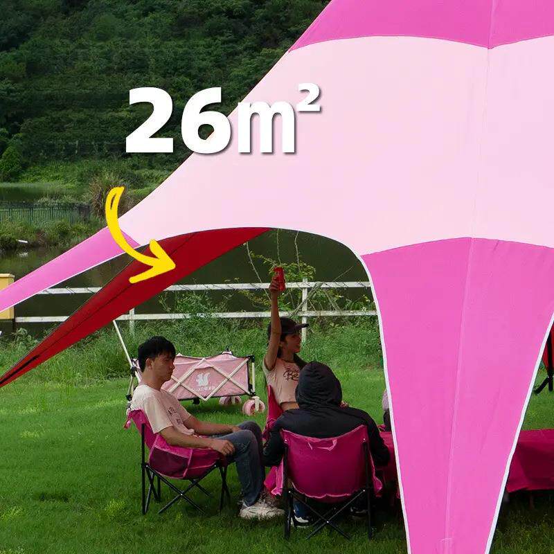 彩色户外单峰天幕云顶八爪鱼露营营地帐篷绿色白色拼接绿地白云款