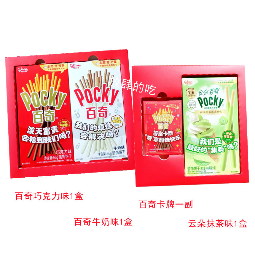 格力高pocky百奇巧克力草莓牛奶抹茶涂层饼干棒礼盒装粒粒曲奇