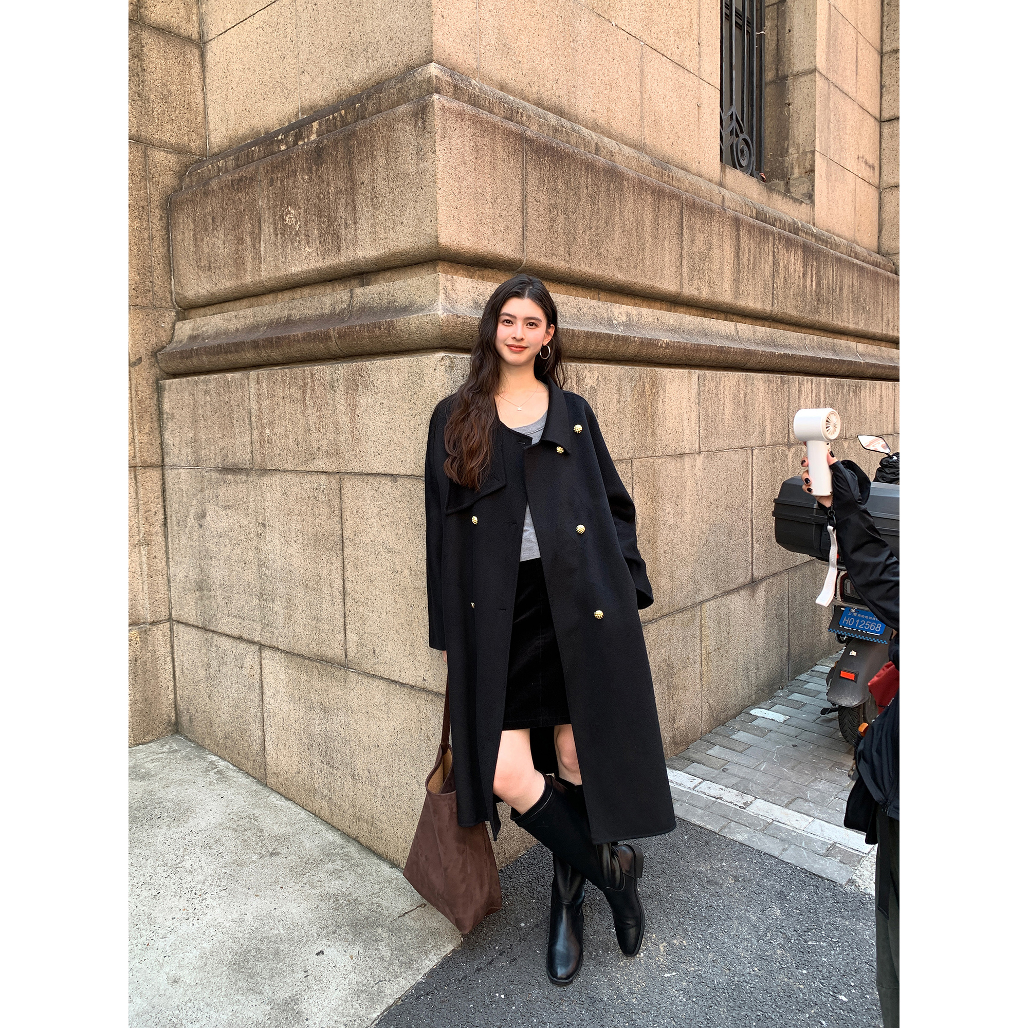 pusumede 温柔织物 基础U领羊毛长袖针织衫女气质修身打底衫上衣