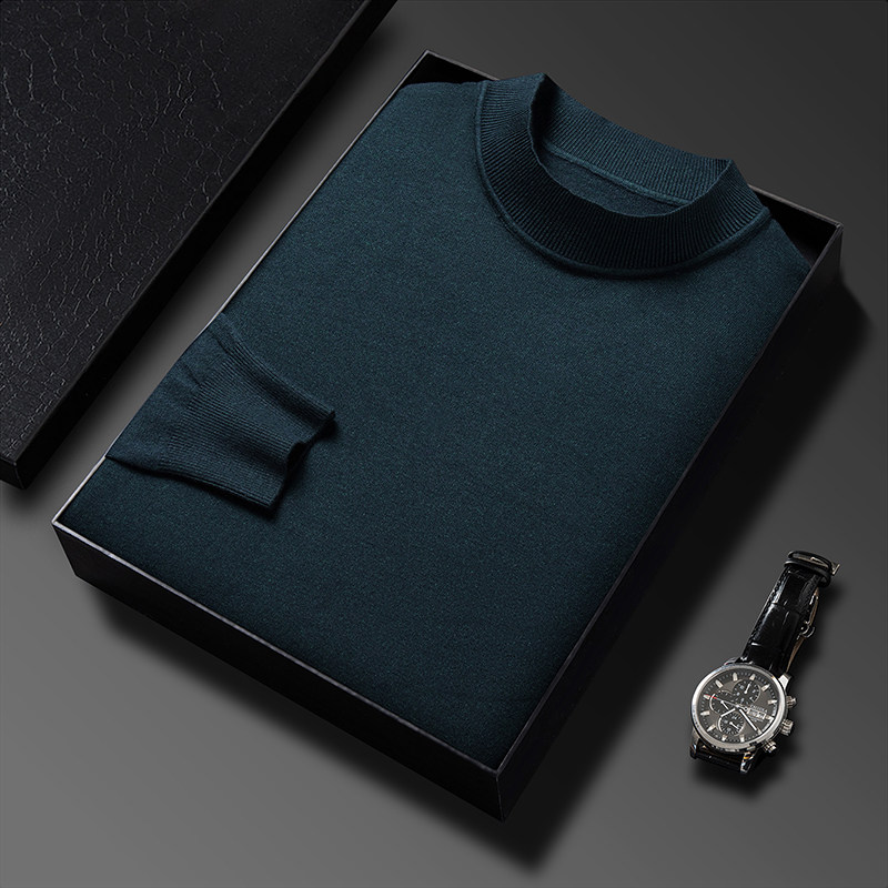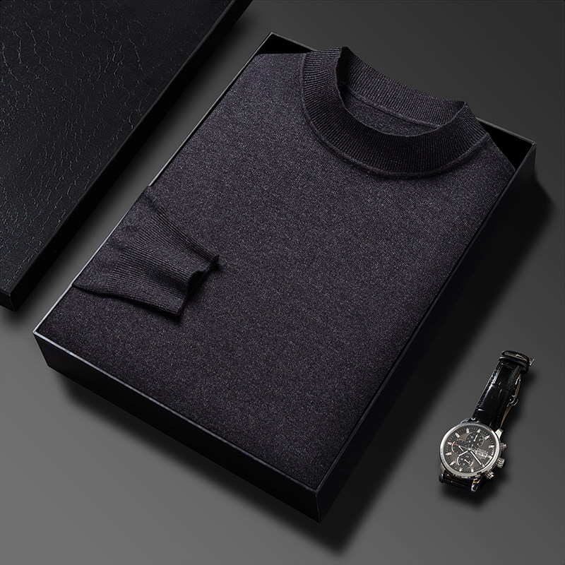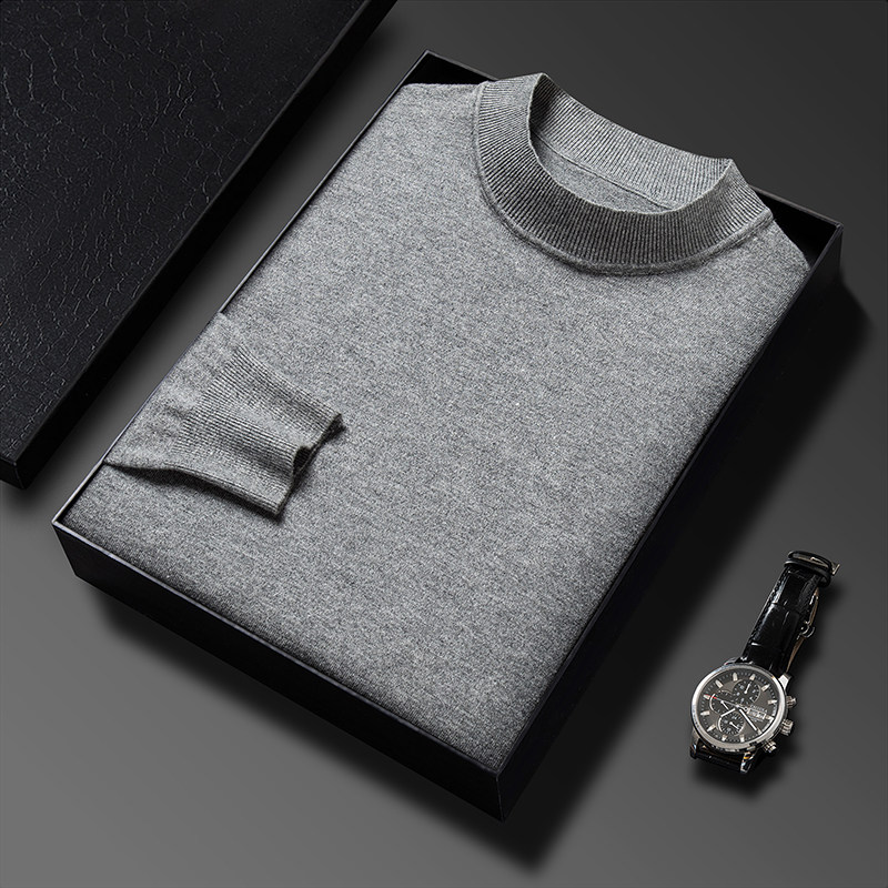 鄂尔多斯市羊绒衫男半高领白色毛衣加厚时尚中青年羊毛针织打底衫