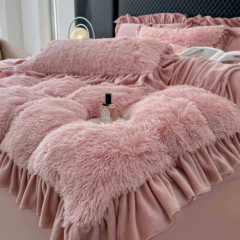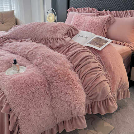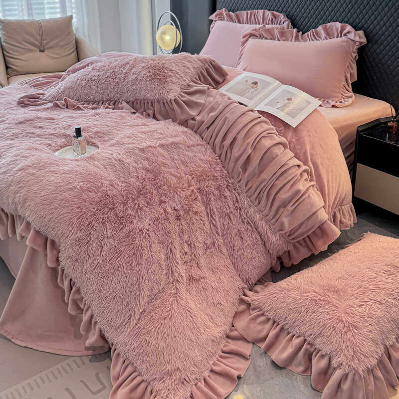 四件套加厚牛奶绒床单款式公主风
