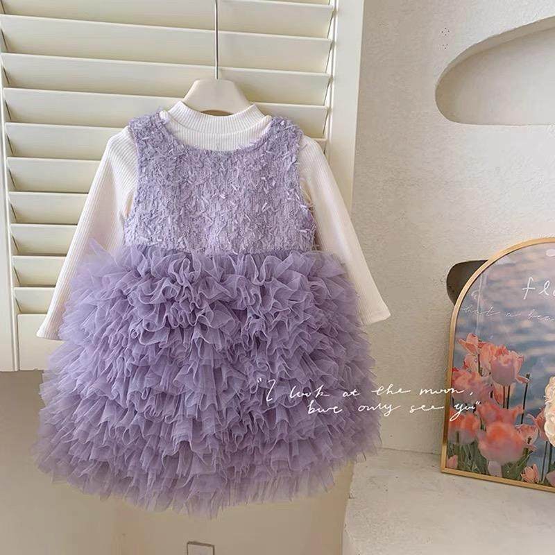 女童冬季宝宝周岁加绒款高级感蓬蓬蛋糕长袖裙24新款公主礼服裙套