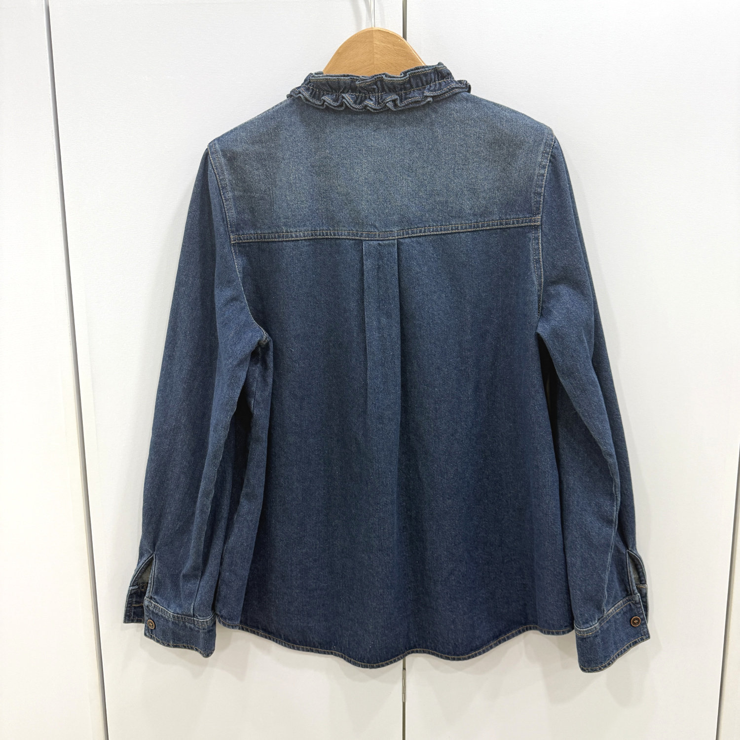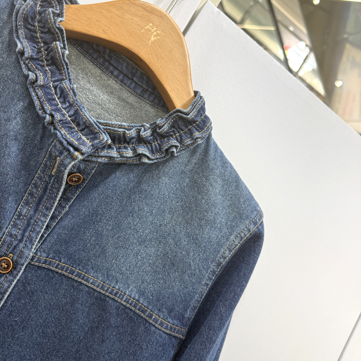 26629欧洲站2026春韩版时尚休闲宽松显瘦花边圆领单排扣牛仔衬衫