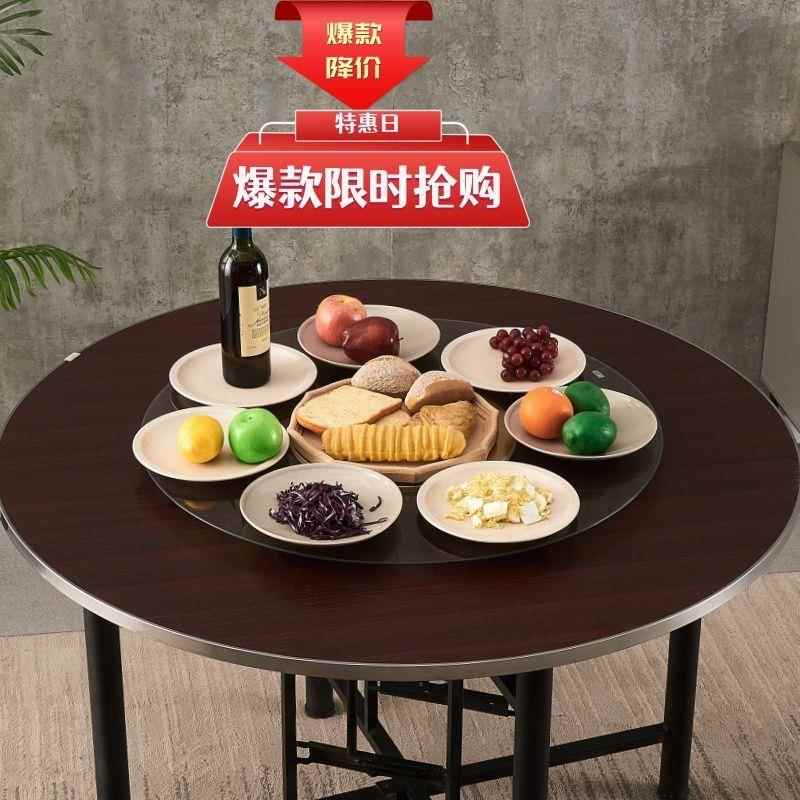 大圆桌餐桌加厚桌面家用小户型吃饭宴席桌子酒店可折叠圆形旋转盘