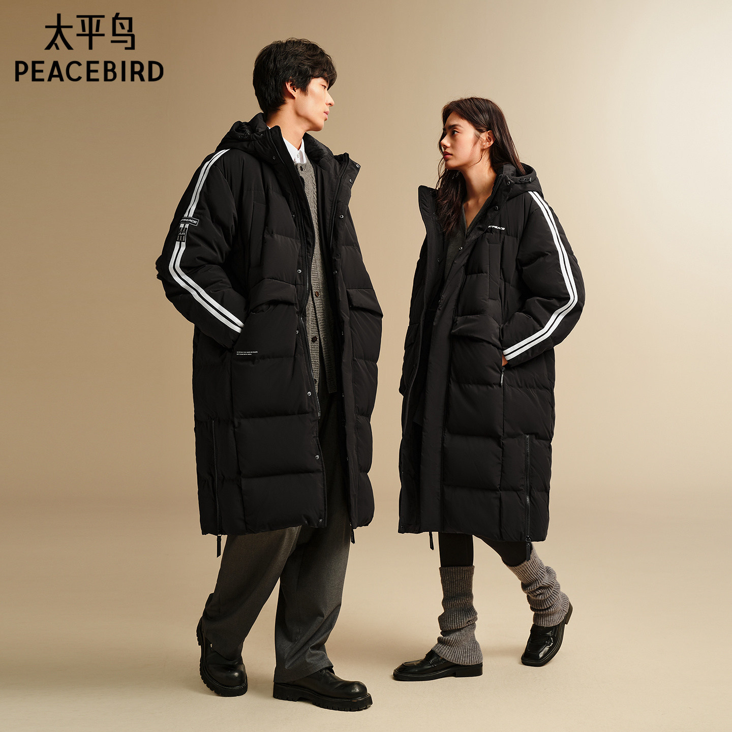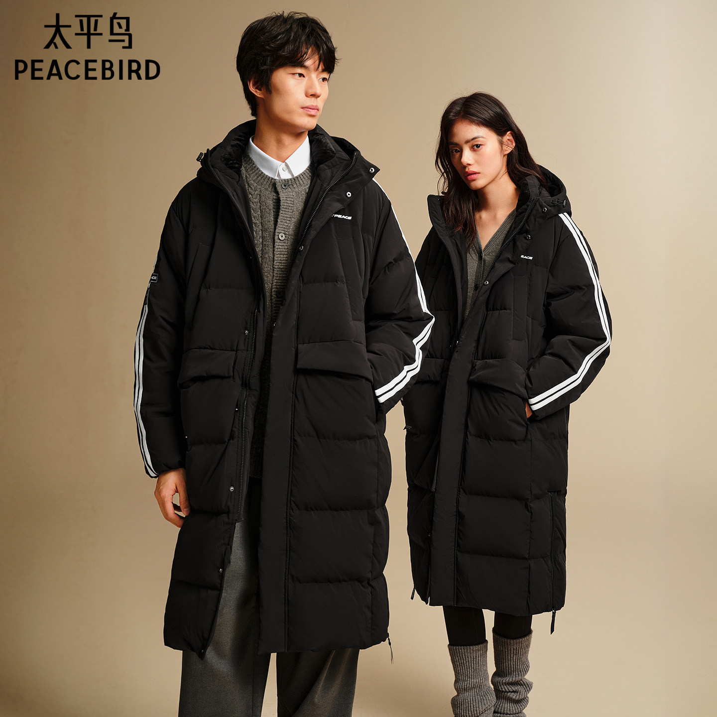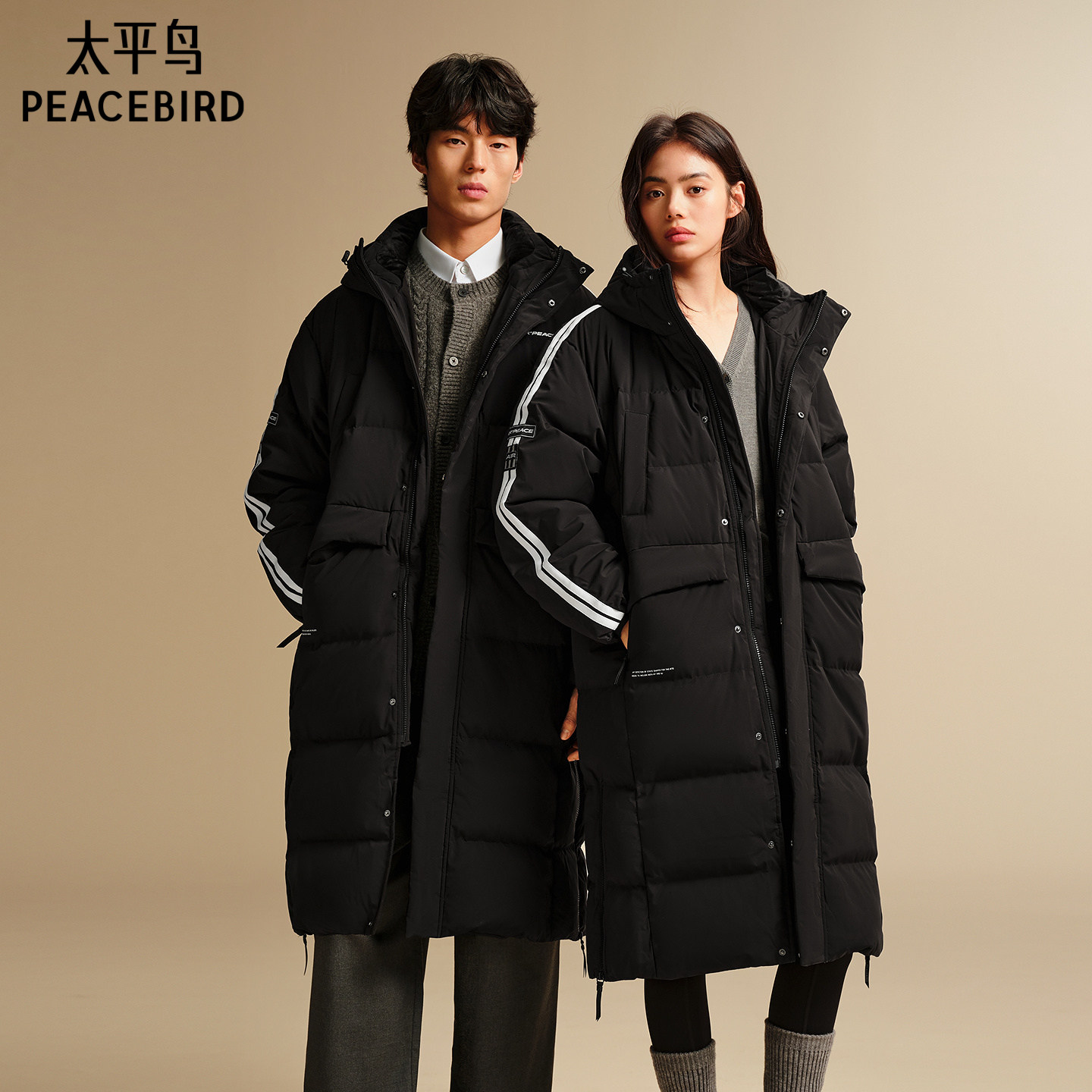 【仅限换货使用】太平鸟男装 过膝长款连帽情侣羽绒服
