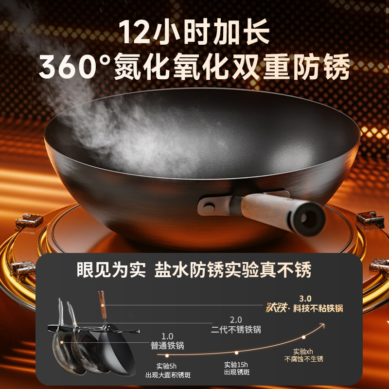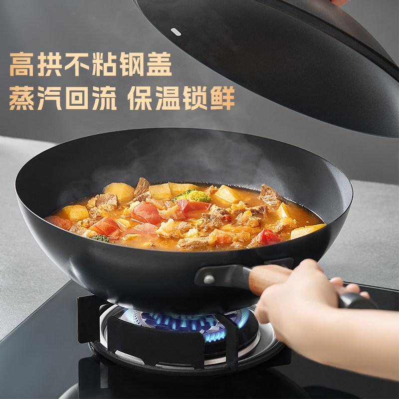 【重磅新品】爱仕达不粘铁锅有钛无涂层家用炒锅电磁炉燃气灶通用
