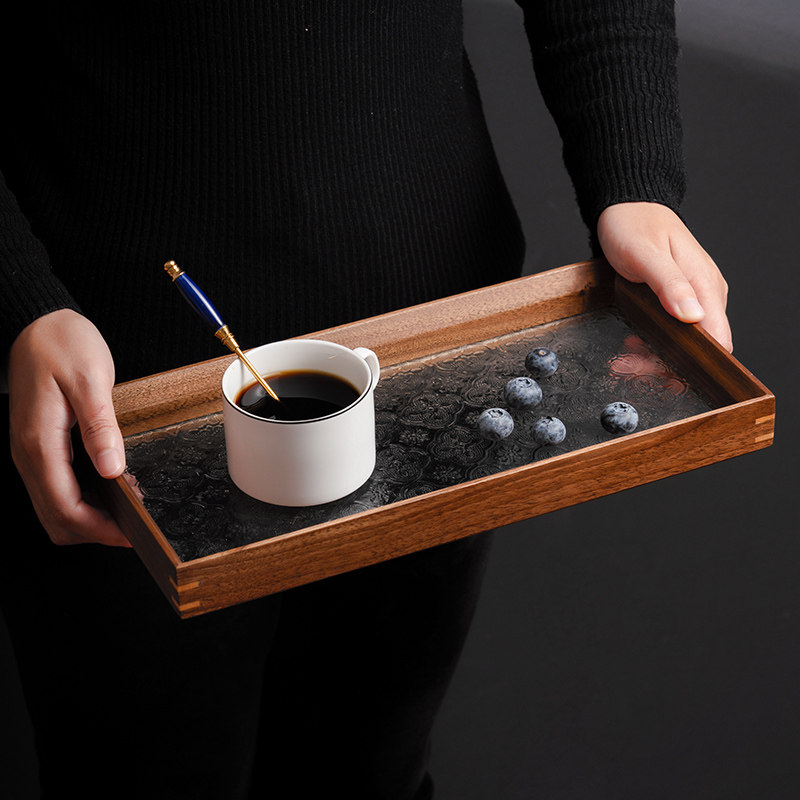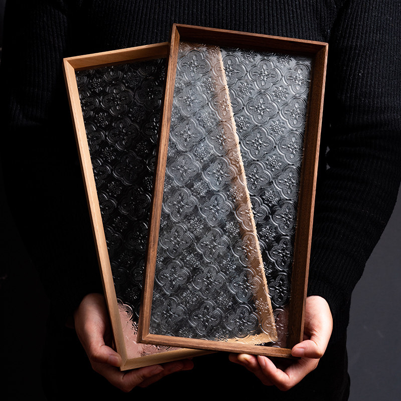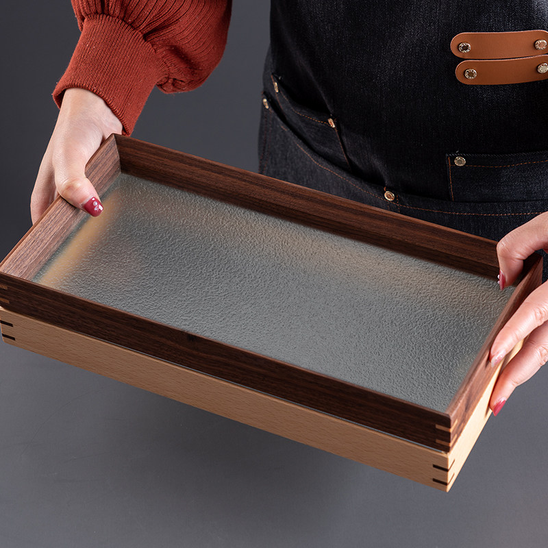 onlycook家用玻璃长方形实木茶盘