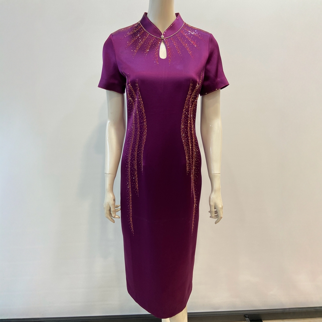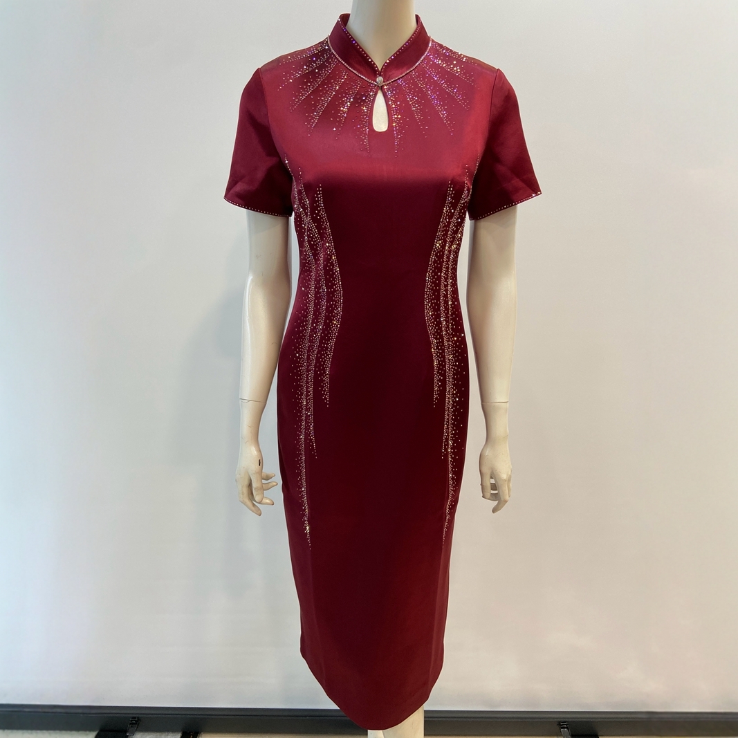 敬酒礼服喜婆婆裙夏装醋酸缎连衣裙新中式喜妈妈重磅烫钻婚礼旗袍