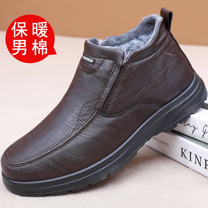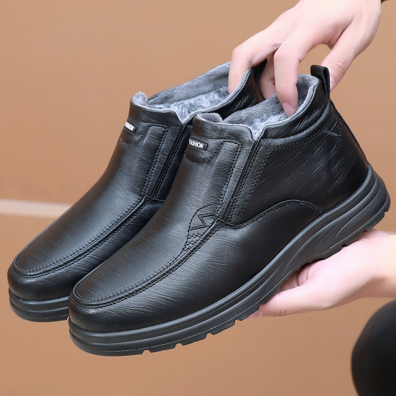 老北京布鞋加绒加厚保暖爸爸棉鞋冬季休闲棉布鞋防水防滑软底老人
