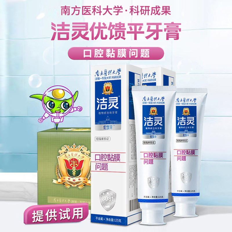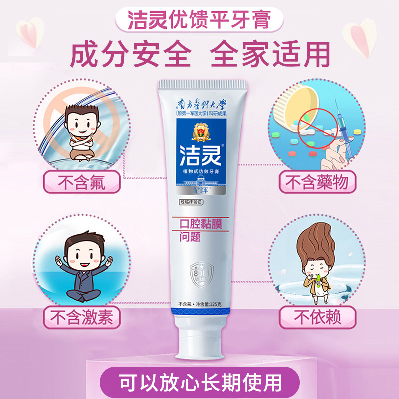 洁灵优馈平牙膏组合套装 家庭防溃口腔黏膜护理抑净男女功效牙膏