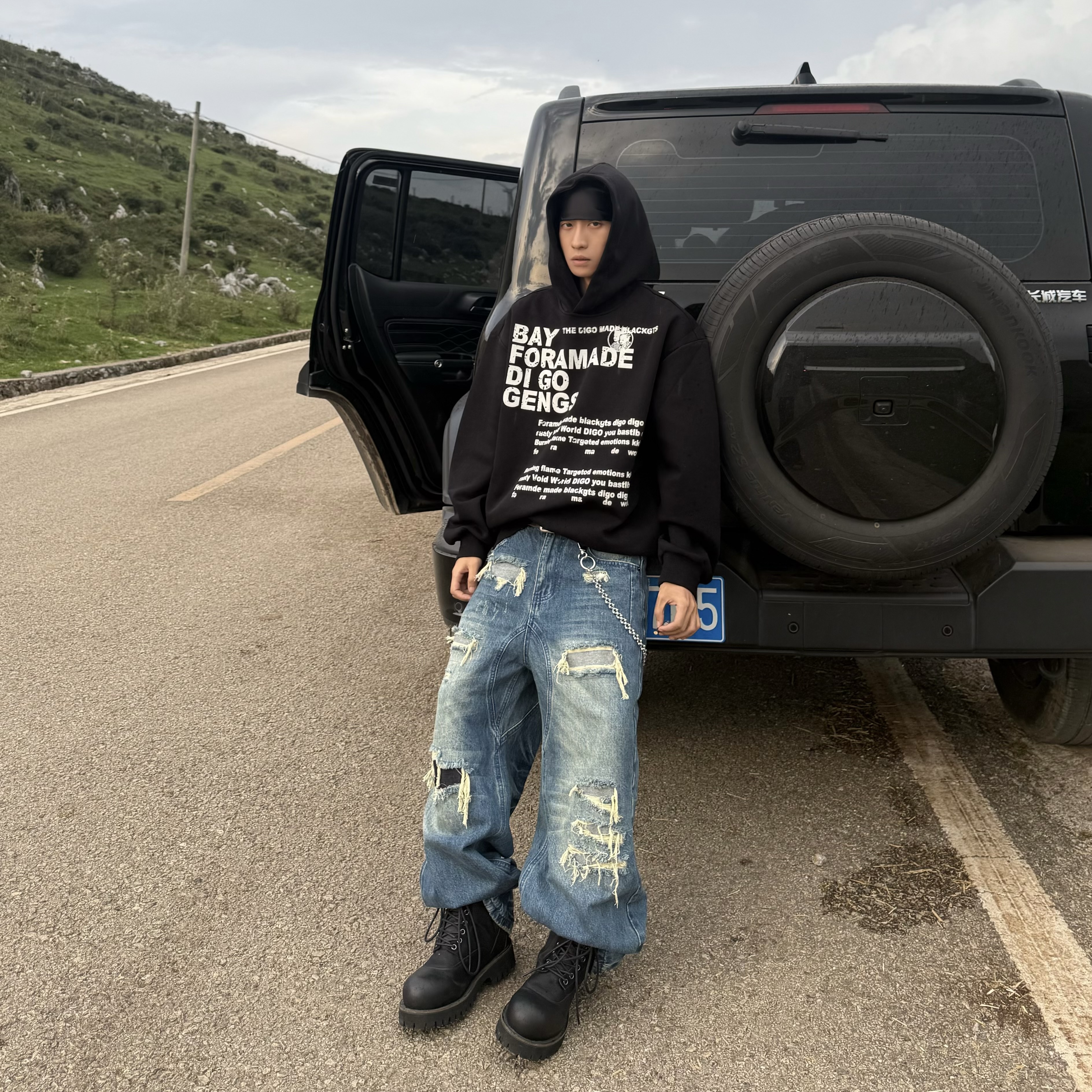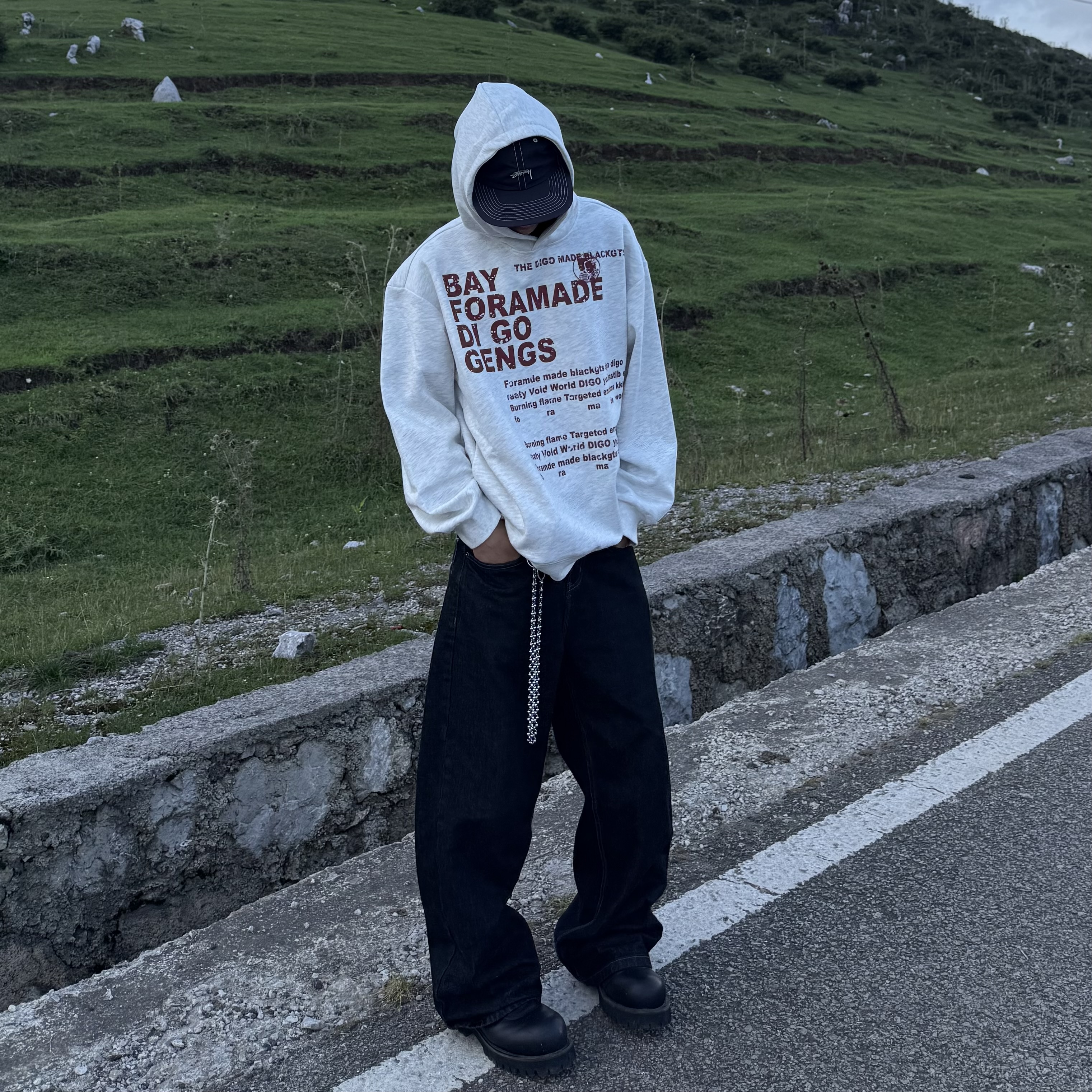HY711 美式标语慵懒宽松连帽卫衣男女短宽版型百搭情侣上衣外套