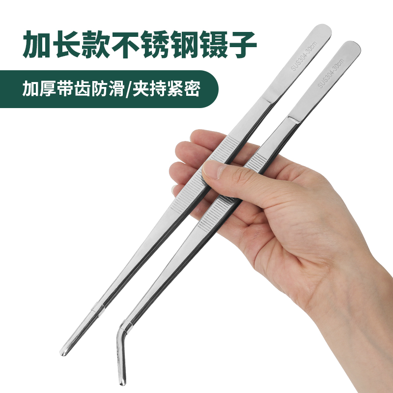 304不锈钢镊子圆弯头加长加厚敷料镊子鱼缸水草聂子工具维修夹子