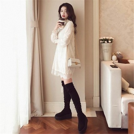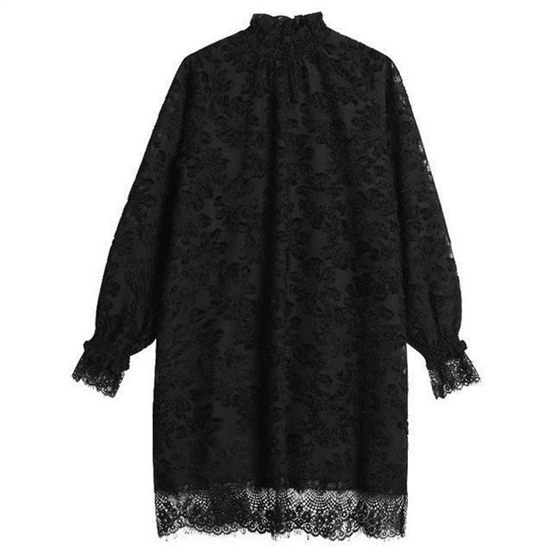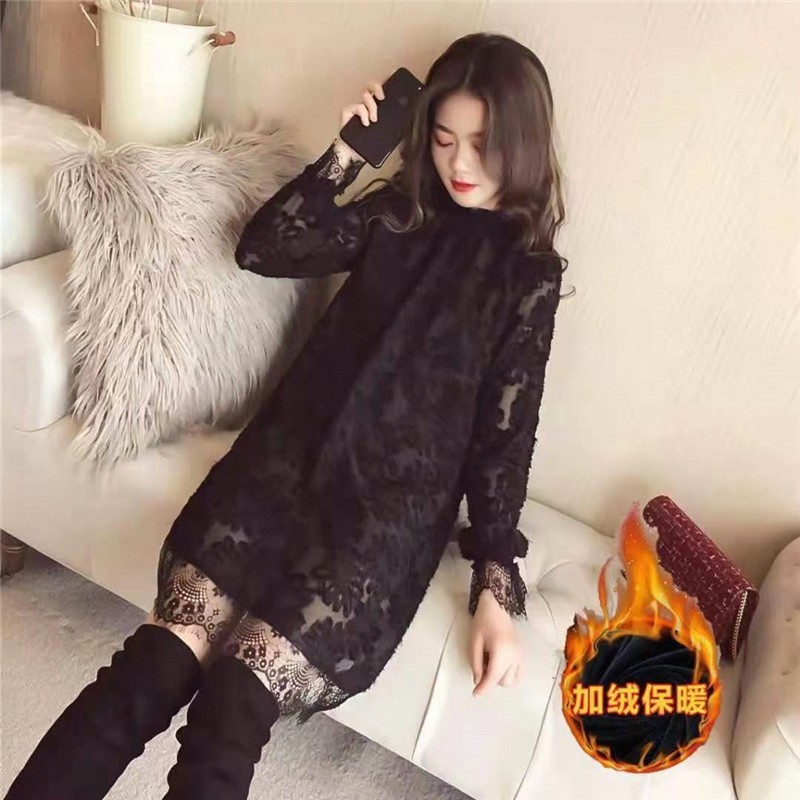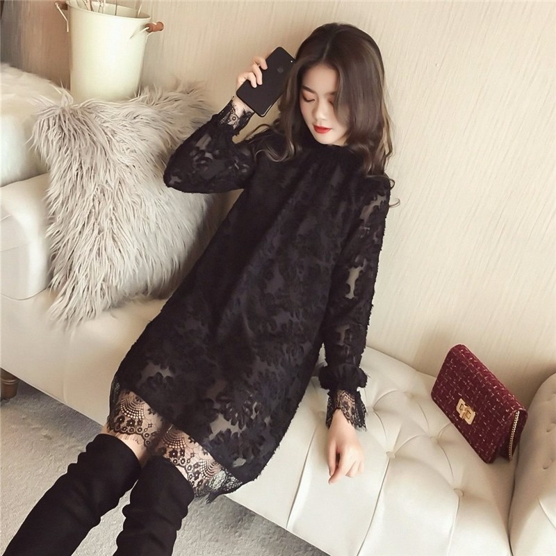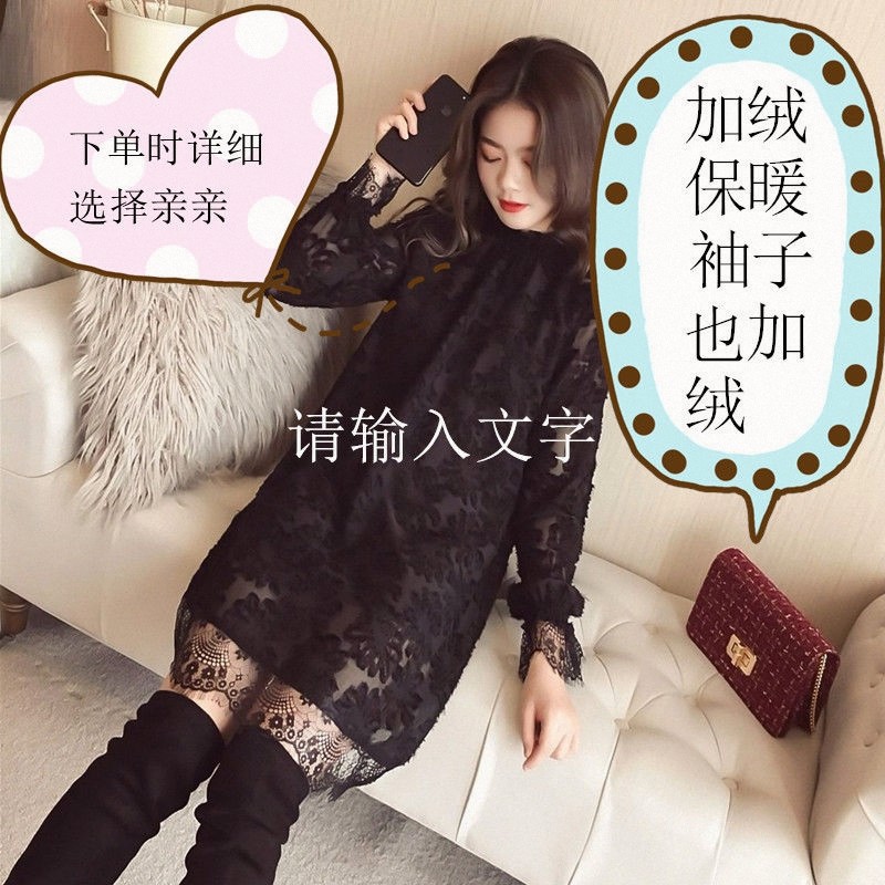 韩版T恤雪纺加厚新款春秋中长款显瘦上衣宽松打底衫蕾丝连衣裙女