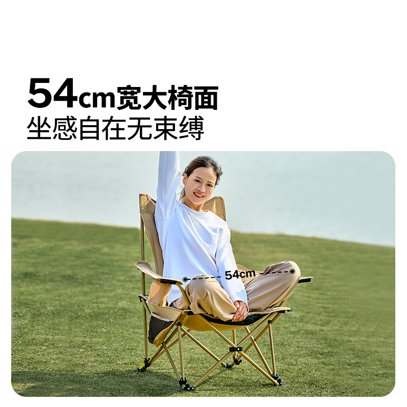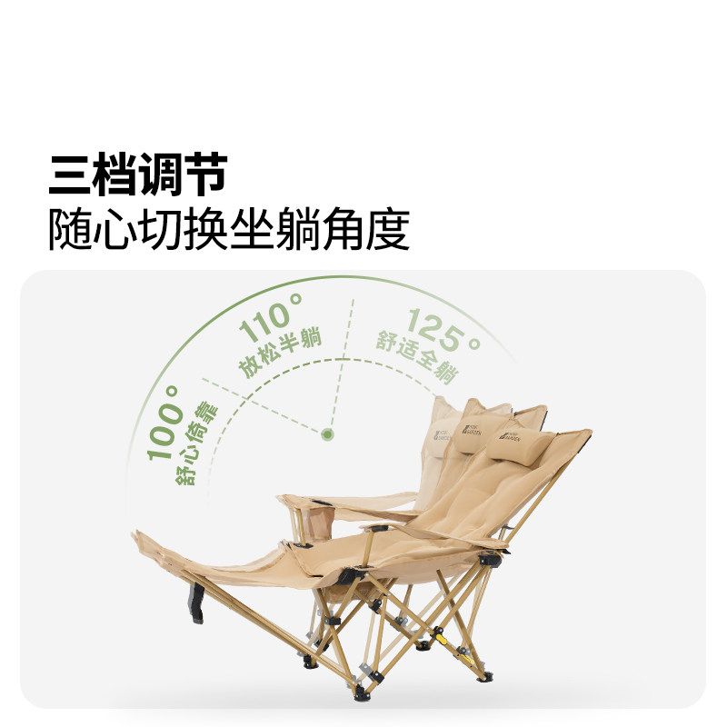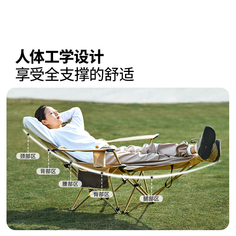 牧高笛乐享躺椅夹棉高背月亮椅可调节户外露营折叠椅家用午休舒适