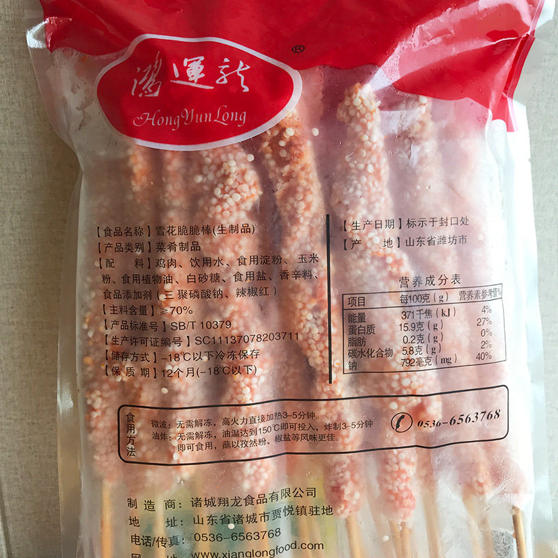 鸿运龙雪花脆脆棒 20串/包 鸡整肉条奶茶油炸小吃冷冻半成品 商用