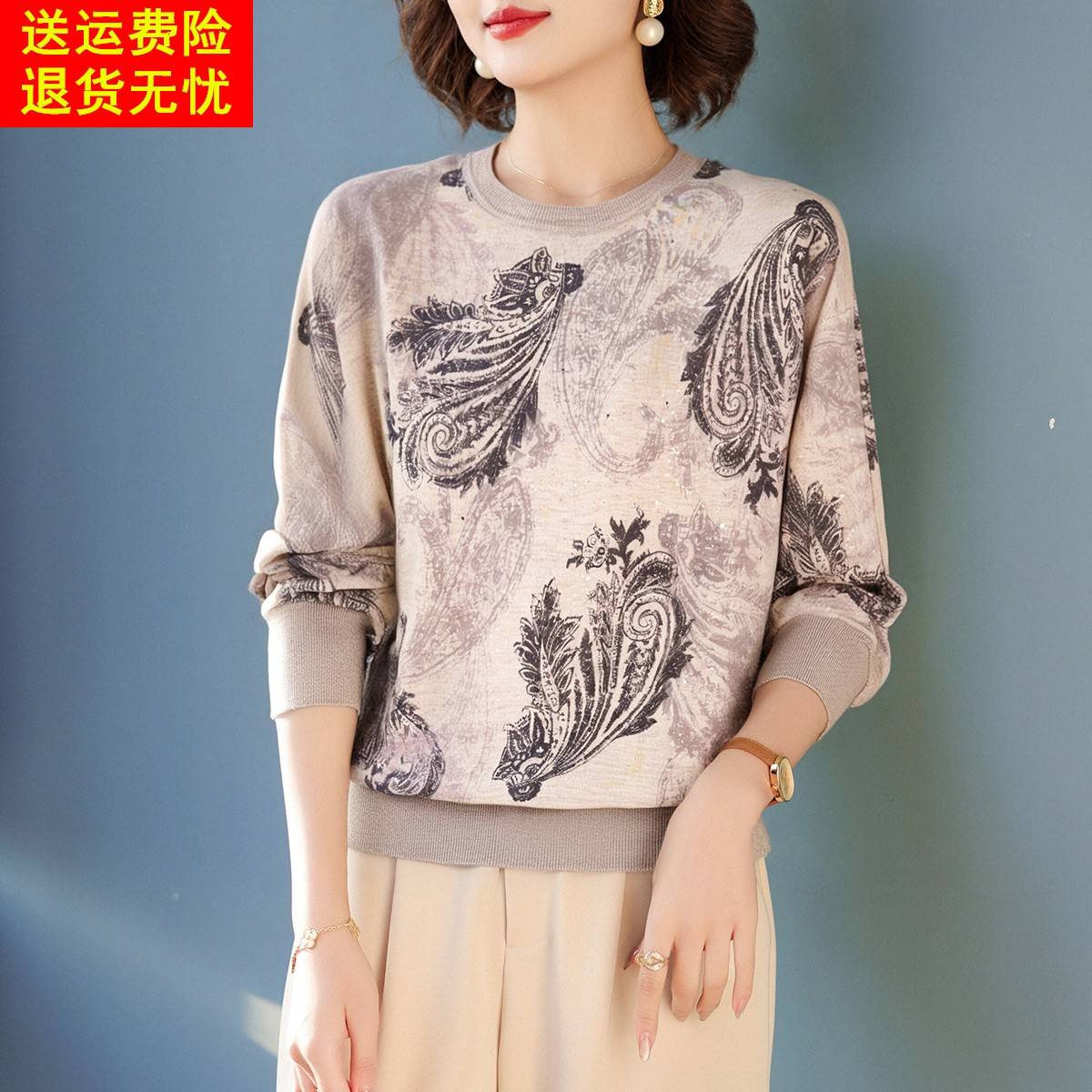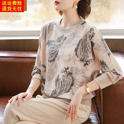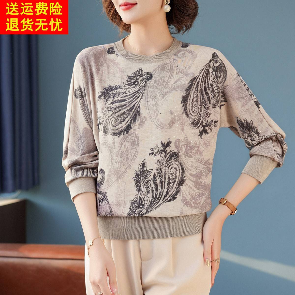 妈妈洋气大码打底衫中年女装春秋装长袖T恤中老年婆婆薄款上衣服